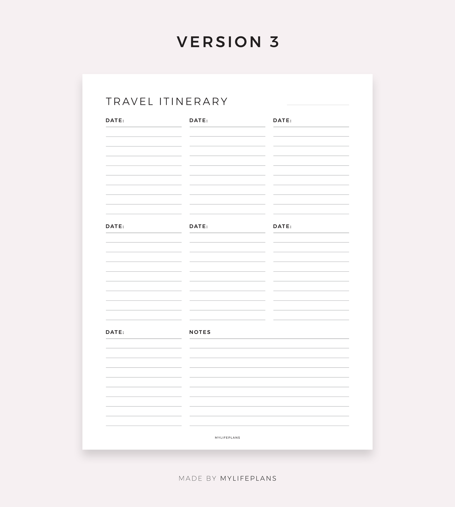 Simple Travel Itinerary, Digital Template for Goodnotes, Notability, Ipad
