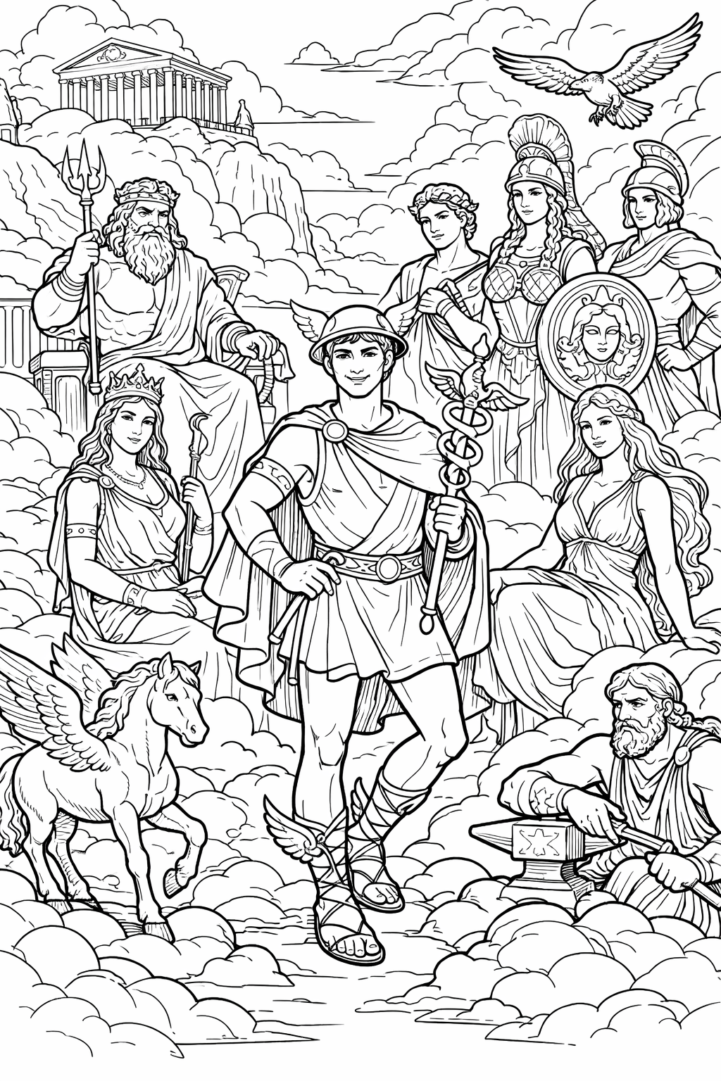 Hermes, 62 designs, coloring ebook, digital printable product, instantly download
