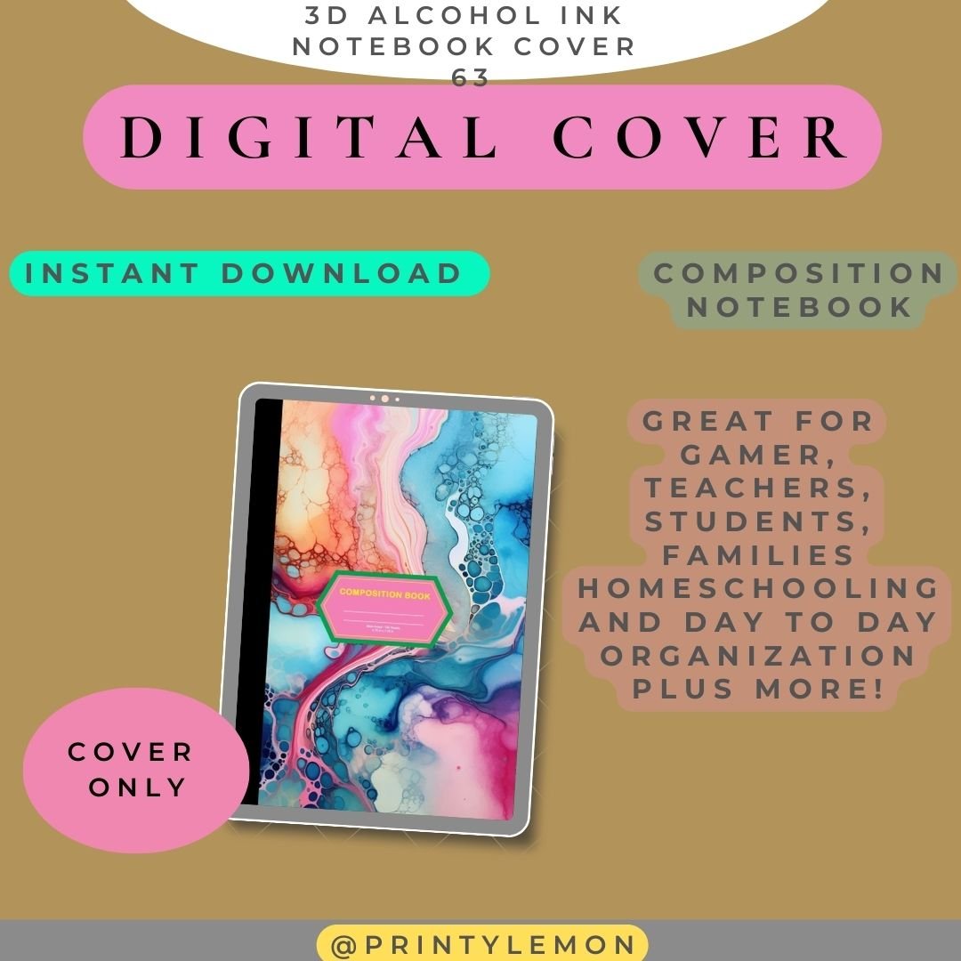 63 Alcohol Ink 3D | Digital Cover Premium | Notebook Cover | GoodNotes | Composition Notebook | Printable