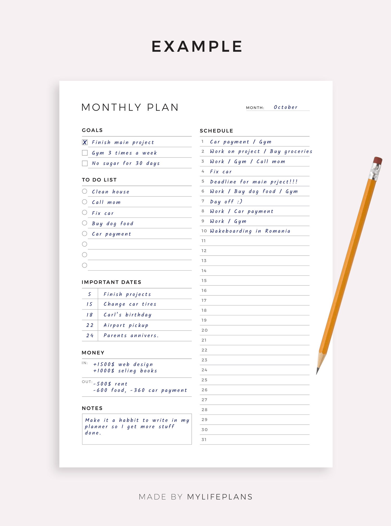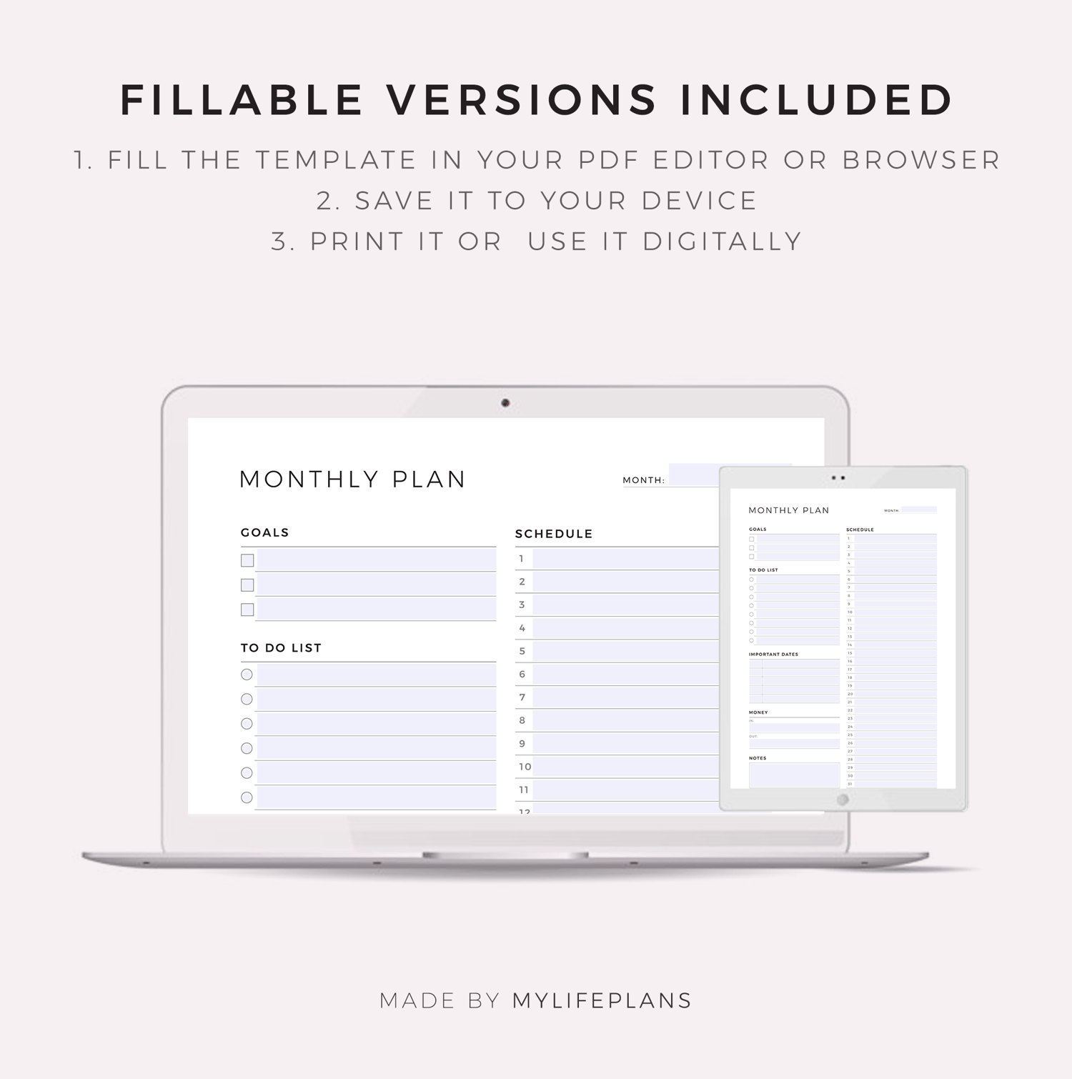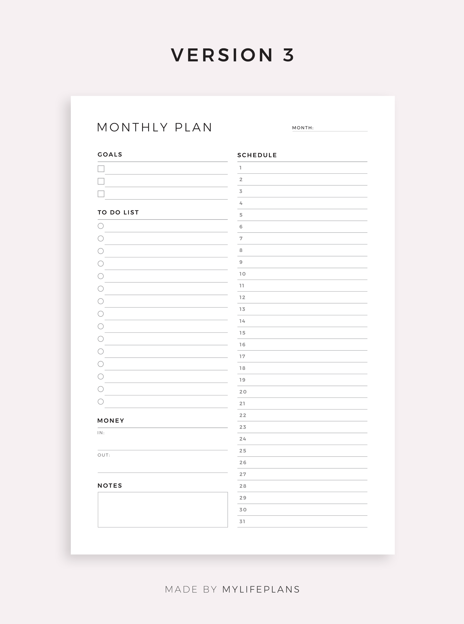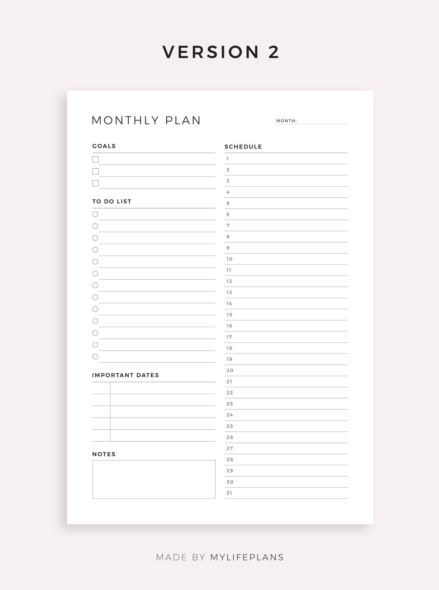 Month At a Glance - Monthly Goals, Monthly To Do List, Important Dates, Finance Tracker, A4/Letter Size, Printable