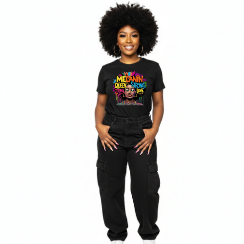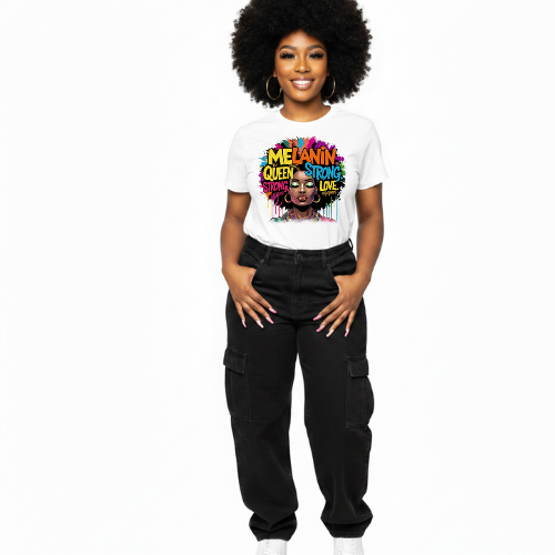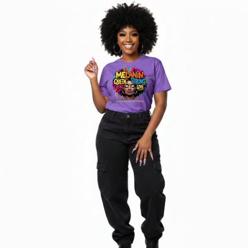Celebrate confidence, culture, and power with our “Melanin Queen, Strong Love” design.
