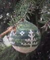 A clever construction technique permits these ornaments to be made without the necessity of awkward knitting over the polystyrene or styrofoam balls. The ornaments are made in two sections with all necessary increases worked in stockinette. The pieces are later placed over a ball and grafted together using kitchener stitch. This requires a bit of patience but is much easier and enjoyable than trying to knit around a solid ball.