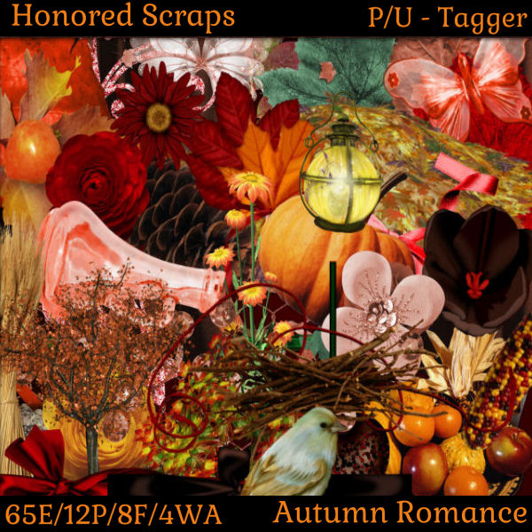 Autumn Romance is a tagger kit that consists of 65 elements, 12 papers, 8 frames and 4 word art.