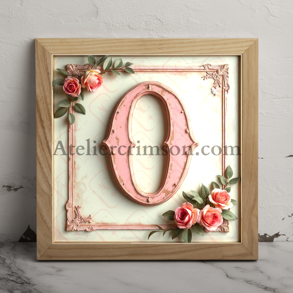 Number 0 pink and shabby chic This charming series presents the alphabet reimagined in a delightful shabby chic style. Each letter is crafted from weathered pink wood, standing proudly against a soft cream background. The collection exudes a romantic, vintage atmosphere with its elegant typography and subtle decorative elements.