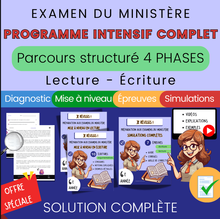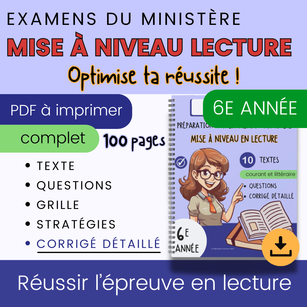 Préparation Examen MEES – Lecture 6e année | 10 textes d’entraînement + corrigés (PDF, 100 pages)