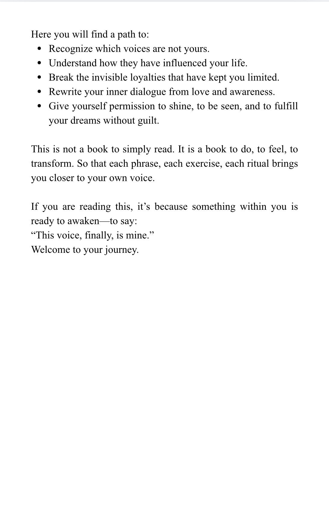 I wrote this for you because in thousands of sessions I have seen people held back by a dialogue that is not their own, but rather words, beliefs, or roles they grew up with and now, in their present, hinder them from being or living as they truly wish. To be the mother they want to be without repeating her story, to be the entrepreneur without fear of “overshadowing” others, to be the one who dares to do what they want regardless of what those close to them have told them they are...