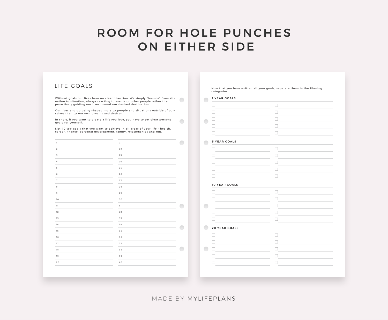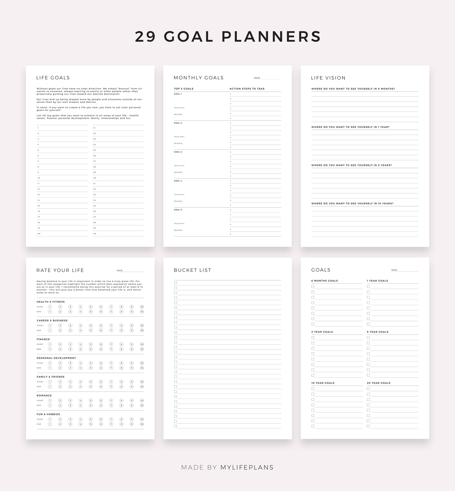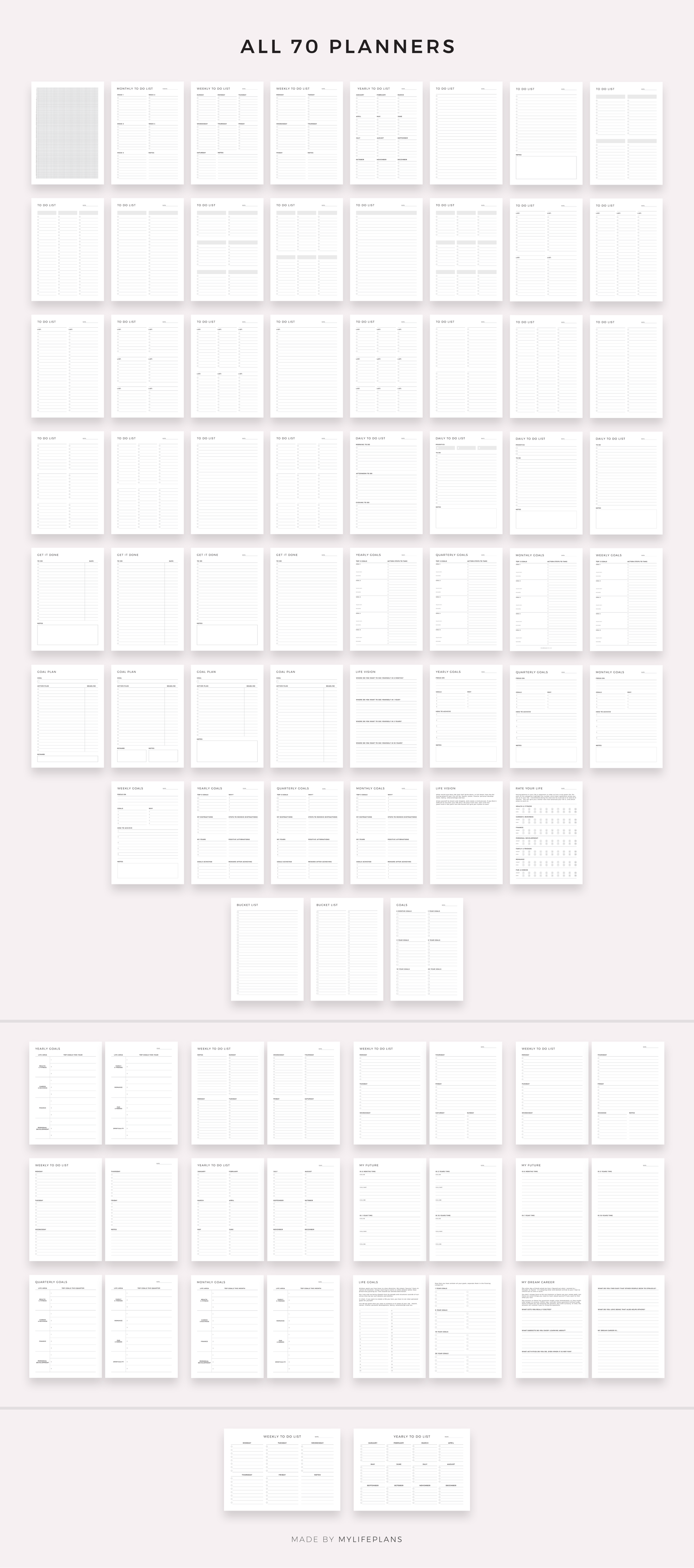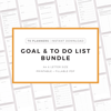 Goals & to do lists bundle. It includes 70 unique printable planners to choose from, that will help you manage your life and achieve your goals. Just download, print and get started right away!