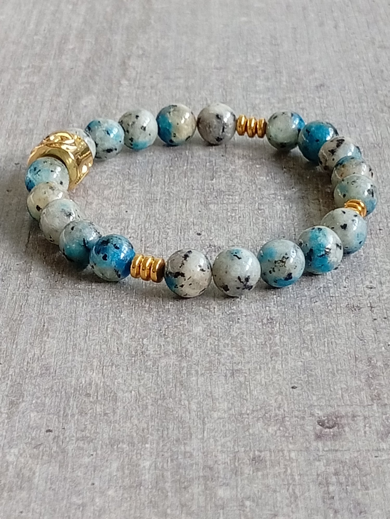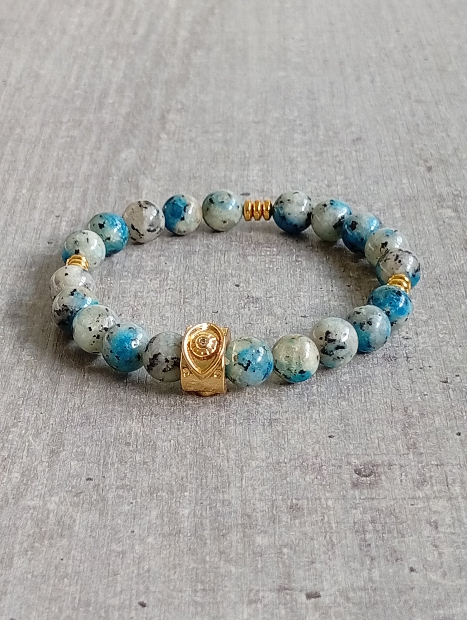 Le Jaspe K2, alliance rare du granit et de l’azurite, ouvre l’esprit à une conscience plus vaste tout en ancrant profondément dans la matière.