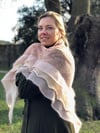 The shawl uses two 100g skeins of West Green Loft Yarns 100% merino, 400m/100g and one skein of WGLY Silk+Mohair, 400m/50g.