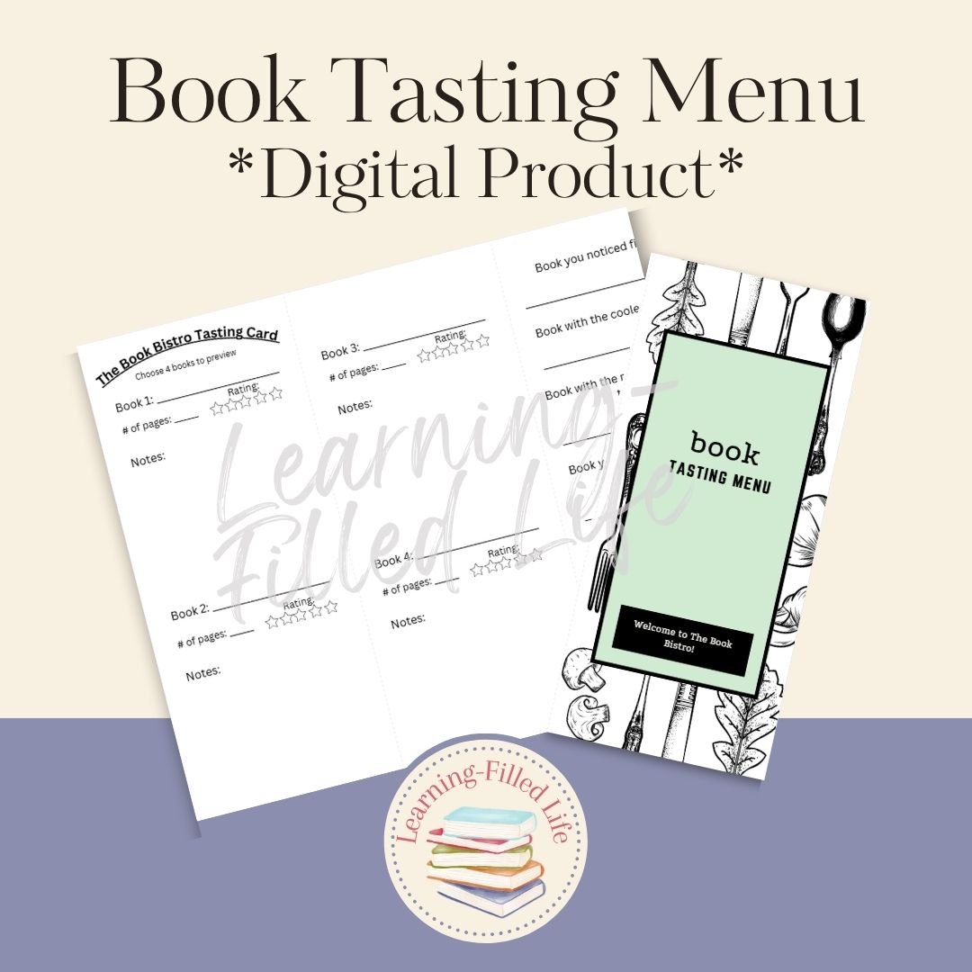 Turn your homeschool book selection into an exciting and engaging experience with this Book Tasting Menu! This printable resource is designed to help students sample the books they'll be reading throughout the year—just like a menu at a restaurant.