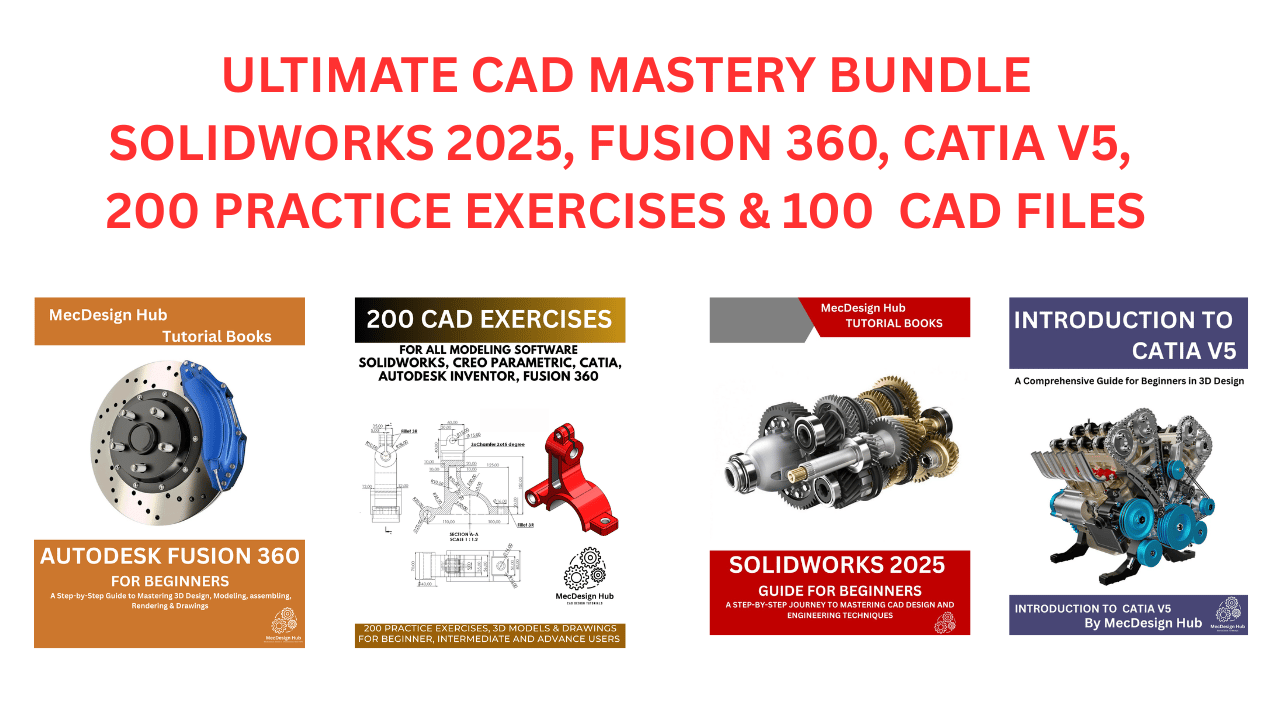Master CAD design with this all-in-one bundle: Ultimate CAD Mastery Bundle: SolidWorks 2025, Fusion 360, CATIA V5, 200 Practice Exercises for Beginners & Engineers & + 100 CAD Files.