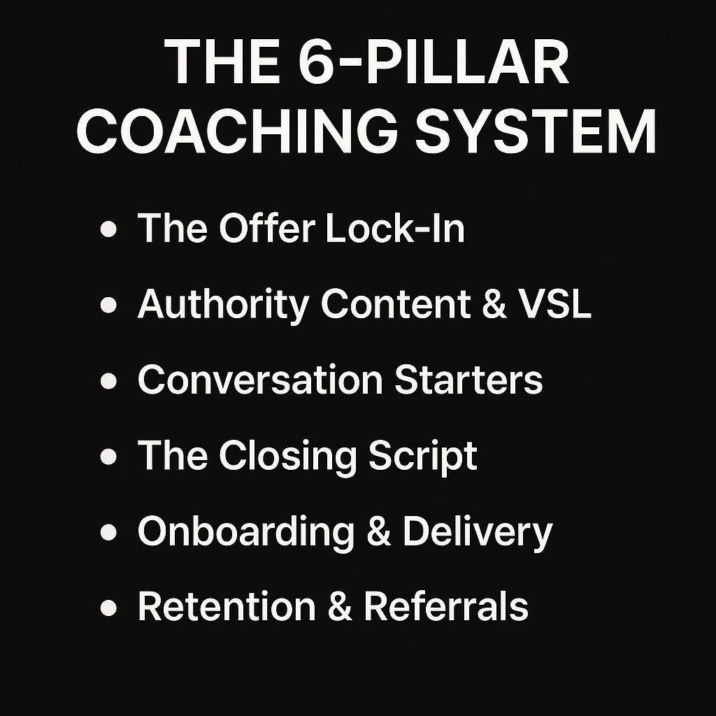 The proven 6-pillar system that takes you from “just posting content” to signing clients, making money, and building momentum as an online coach.