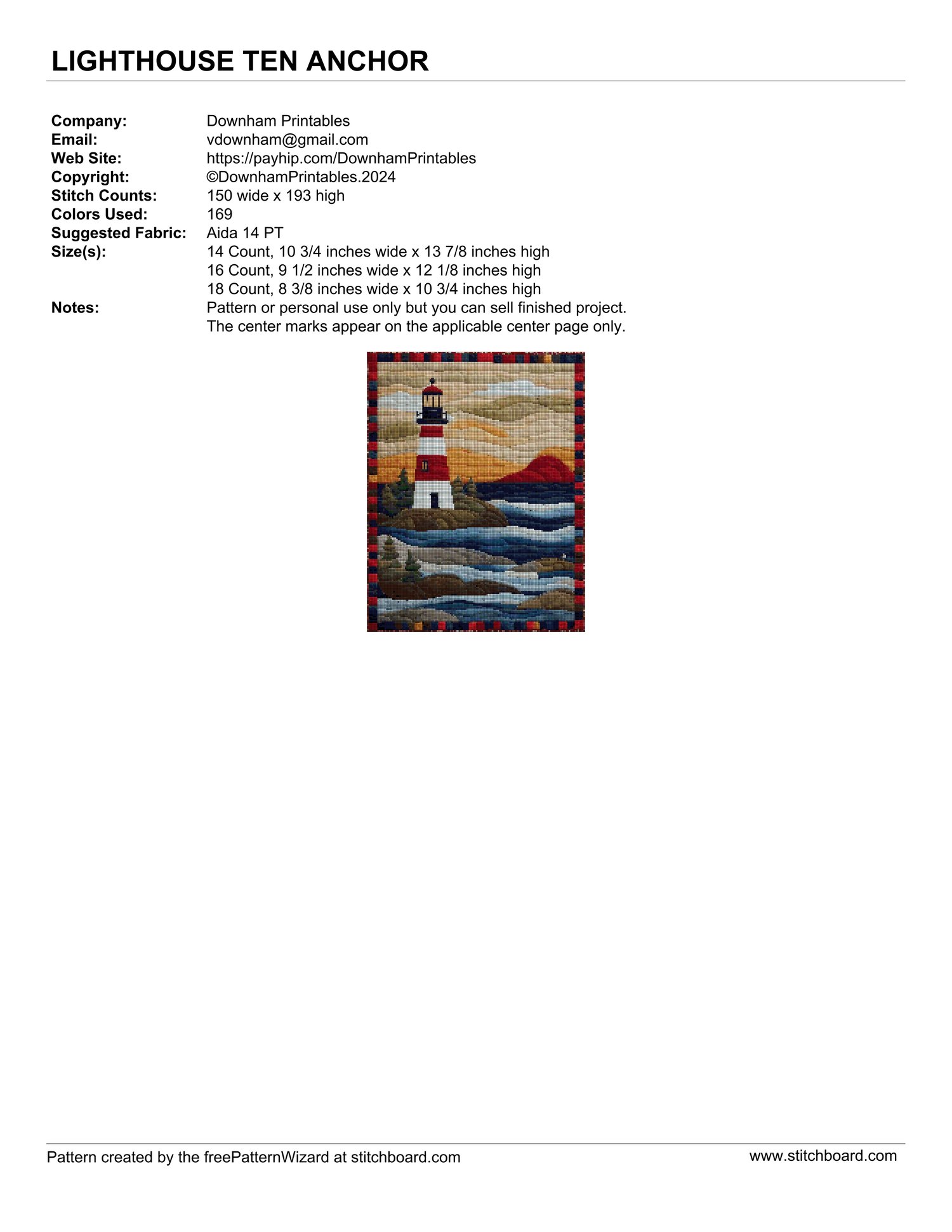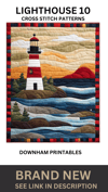 LIGHTHOUSE TEN IS AVAILABLE IN DCM AND ANCHOR CROSS STITCH PATTERNS. THE PATTERNS ARE COMBINED IN A PDF FILE THAT CAN BE DOWNLOAD IMMEDIATELY AFTER PAYMENT. YOU GET A COVER PAGE, BOTH THE DMC AND ANCHOR PATTERNS COME WITH THEIR OWN UNIQUE CROSS STITCH PATTERNS COTTONS AND SIMPLIFIED PLANNER TO SHOW YOU WHERE EACH PAGE OF THE PATTERN FITS INTO THE OVERALL PATTERN. THIS LIGHTHOUSE PATTERN WAS CREATED WITH THE HELP OF AI IN A QUILT LIKE PATTERN. I HOPE YOU ENJOY COMPLETING THIS FUN LIGHTHOUSE PATTERN. WHY NOT CHECK OUT OUR OTHER NEW AND EXCITING DESIGNS. DOWNHAM PRINTABLE CROSS STITCH PATTERNS ARE ALSO AVAILABLE IN BOOK FORM ON AMAZON AND SOON ON ETSY. KEEP AN EYE OUT FOR THEM!