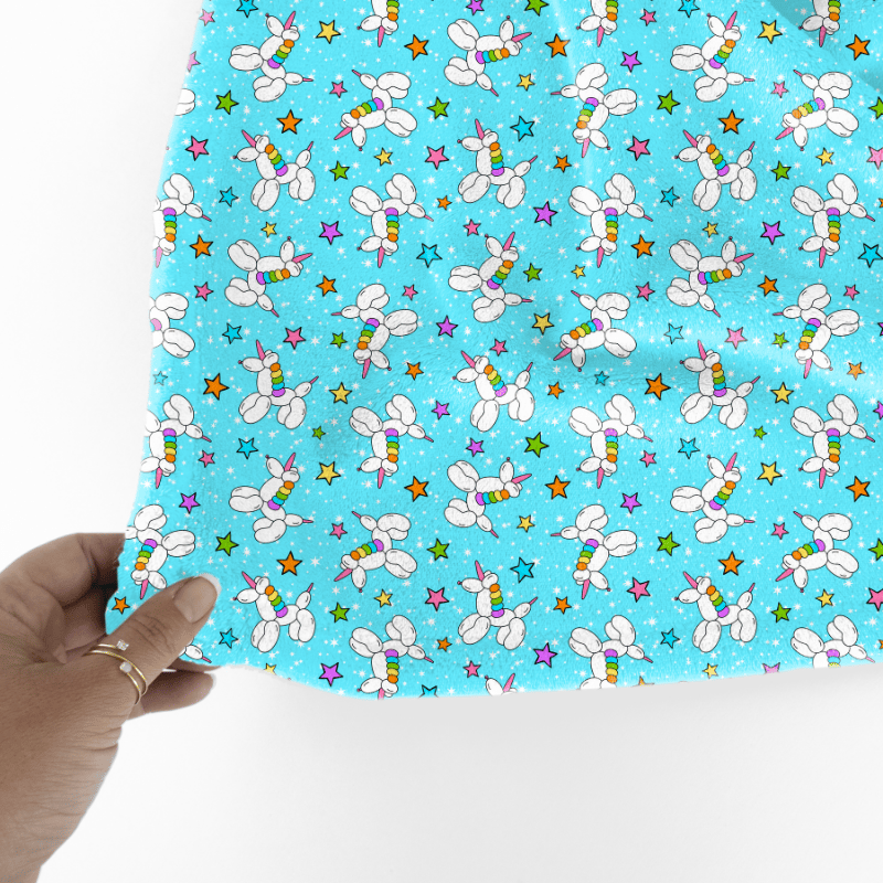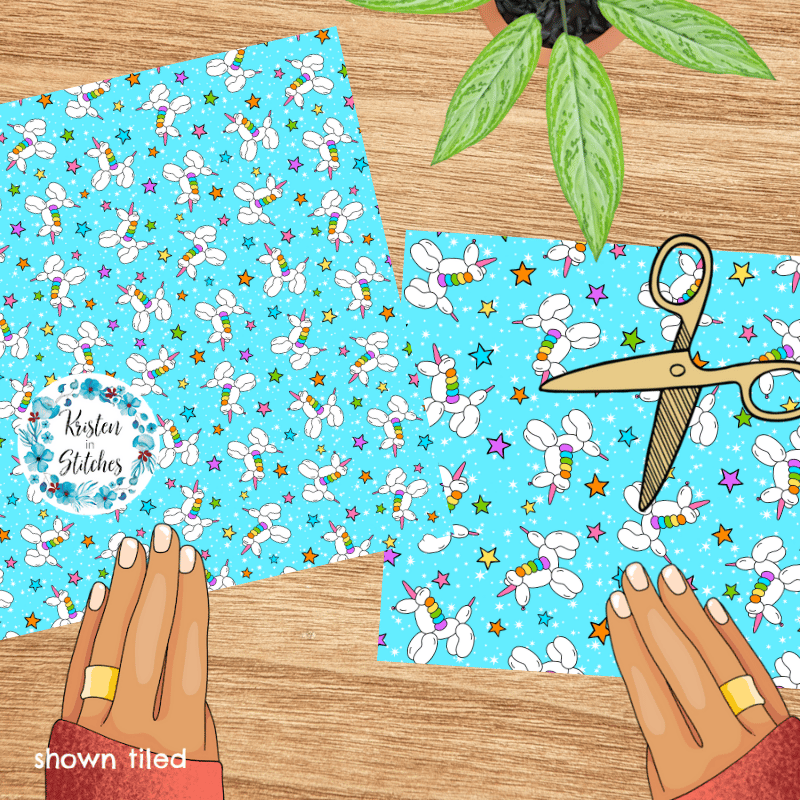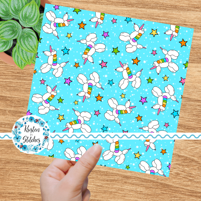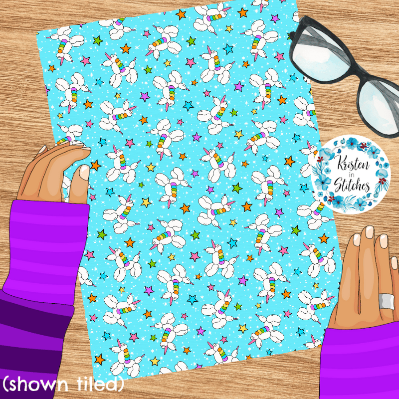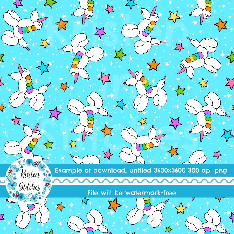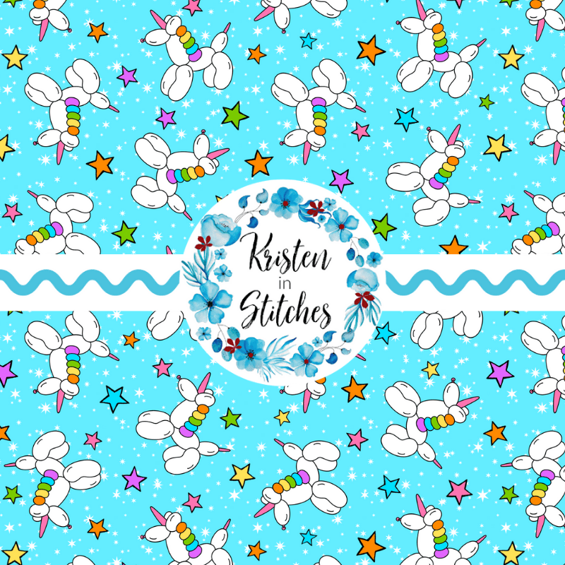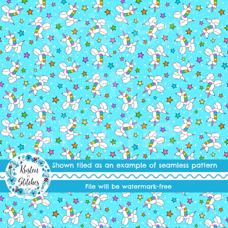 Unicorn Party Balloon Dog Animals Seamless Pattern, White Horses, Blue