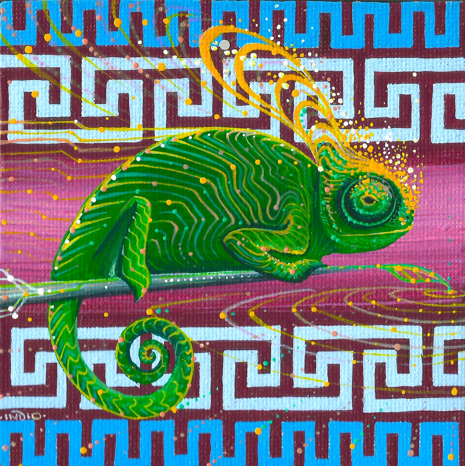 Arte pintado a mano, utilizando acrílico y alfileres sobre mini lienzo de 10x10cm. Junio, 2025. Curridabat, Costa Rica.