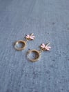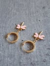 Des boucles d’oreilles délicates et pleines de douceur, ornées de petits papillons émaillés rose pâle suspendus à de fines créoles dorées. Légères et élégantes, elles apportent une touche tendre et poétique à chaque tenue.