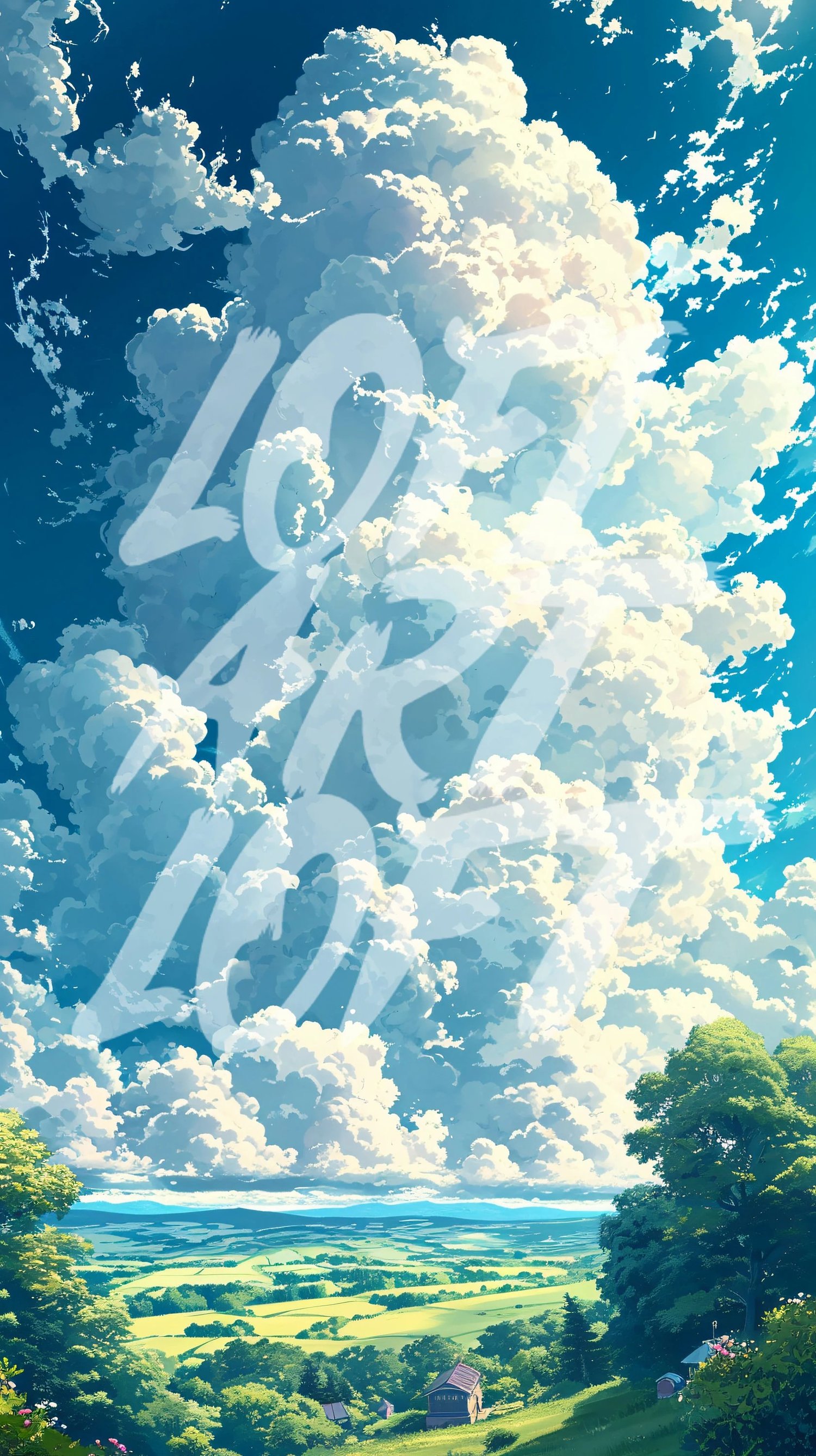 Springy Clouds - UHQ Digital Lofi Anime Art Print | #37
