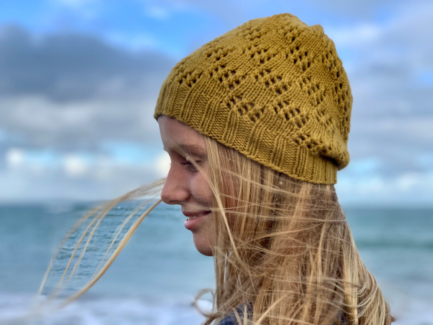 Landscape Beanie is a simple yet striking knit, designed with alternating eyelet and stocking stitch blocks that create a gentle rhythm of texture and light. Inspired by the vastness and ever-shifting colours of the Australian landscape, this beanie captures a sense of quiet expansiveness in every stitch. Knit seamlessly in the round from the brim upwards, it offers a smooth, meditative making experience suited to knitters of all levels. Its relaxed, slouchy fit lends an effortless style, while still being deep enough to pull down over chilly ears when needed. Whether worked in soft neutrals or bold, sunlit hues, Landscape Beanie is a versatile piece, perfect for everyday wear with a subtle nod to the beauty of the land.