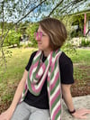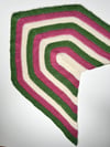 Only Tunisian simple stitch is used for this shawl. Simple increases and decreases are included as is a modified return pass to join each row in each panel as it’s made (same as for Entrelac).