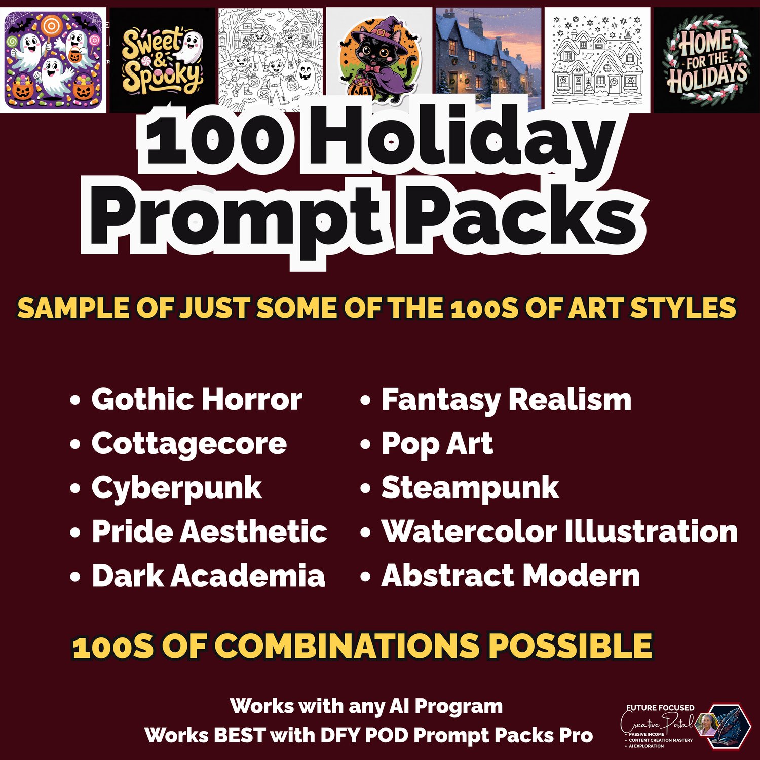 🎁 100 Holiday POD Prompt Packs (Halloween + Christmas)