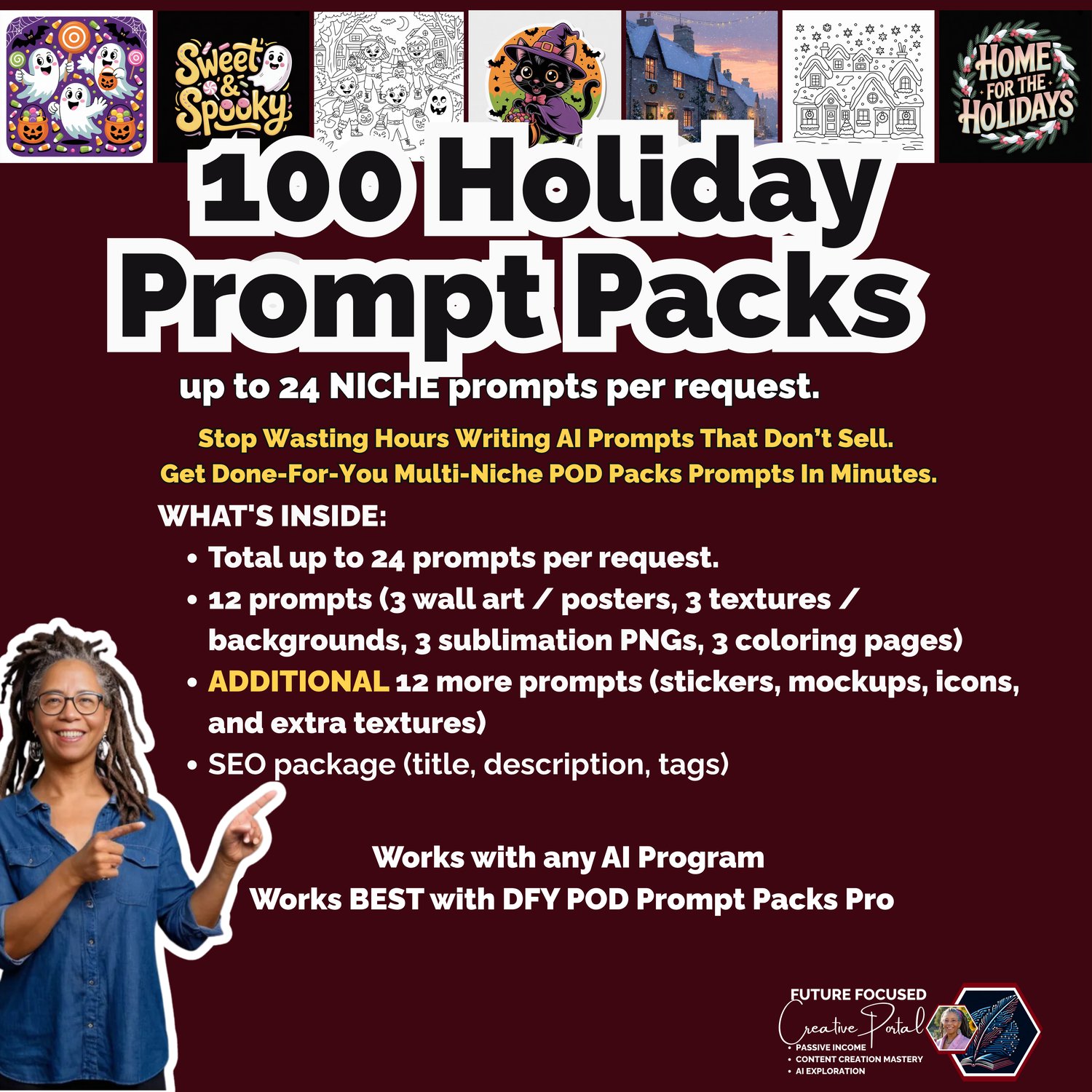 Ready Create holiday prompt pack bundles with SEO titles, descriptions & tags — designed to help you instantly create and package POD products for Etsy, Redbubble, KDP & more.