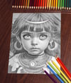 Egypt Cutie Anime Coloring Page, Adults + kids Instant Download - Grayscale Coloring Page Printable PDF