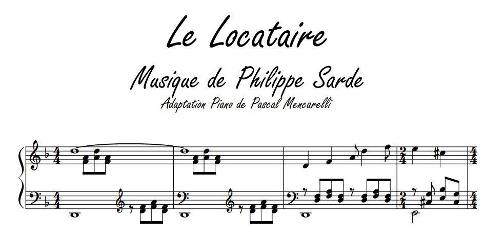 Philippe Sarde - Le locataire (The Tenant) - Partition Piano Solo