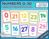 NUMBERS 0-30 FLASHCARDS: Standard style digits