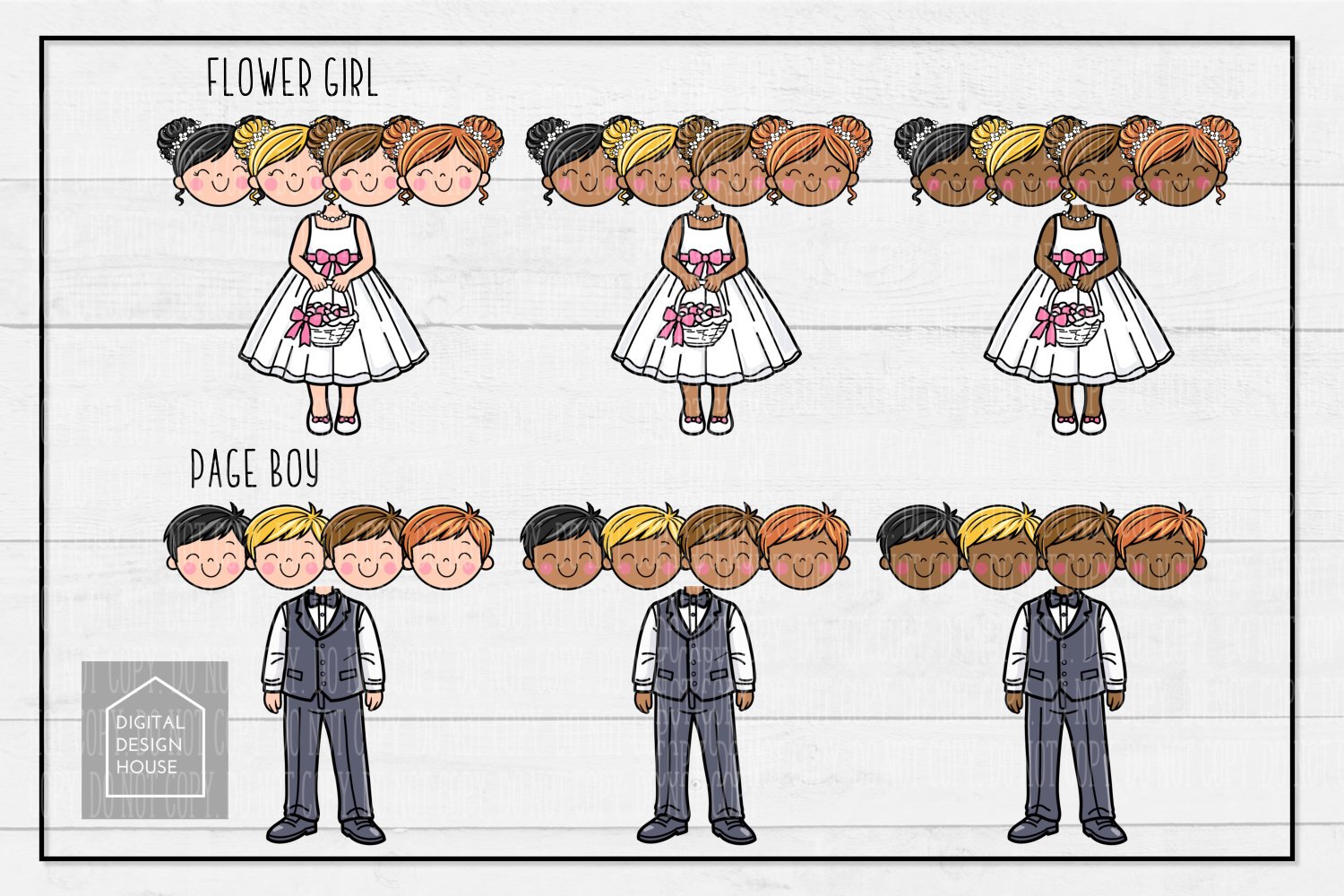 Create your own adorable wedding designs with this Flower Girl & Page Boy cartoon clipart set 💕