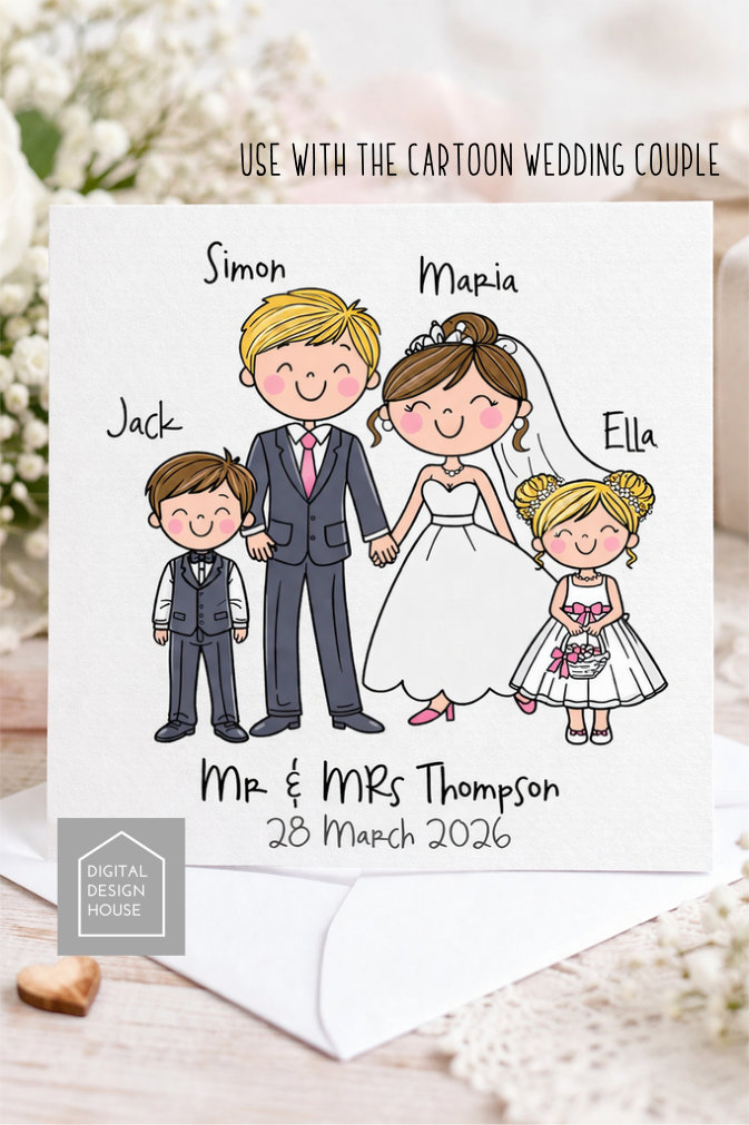 Perfect for crafters, small businesses, and DIY projects, this high-quality PNG bundle allows you to mix & match characters to suit your wedding theme.
