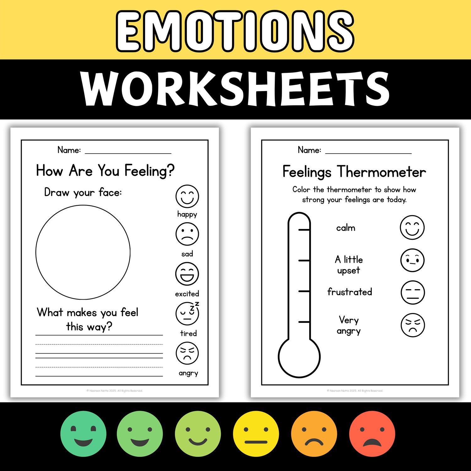 An 11-page black-and-white journal (US Letter size) to help students explore and express emotions. Includes a cover page plus 10 feeling worksheets.
