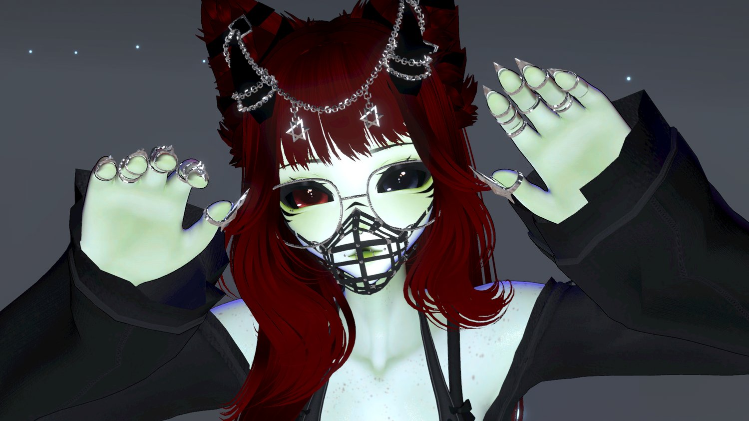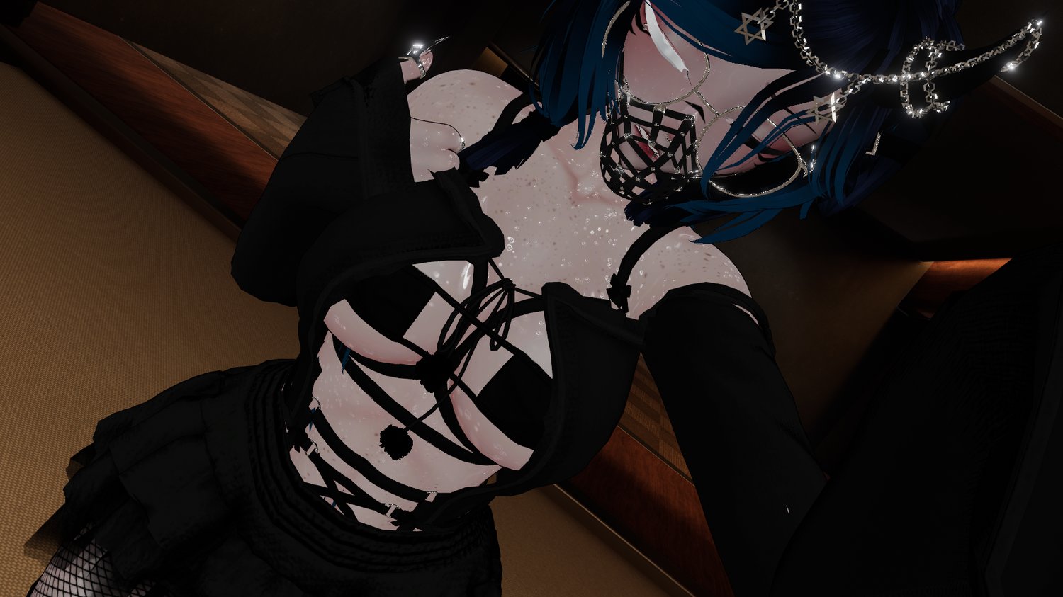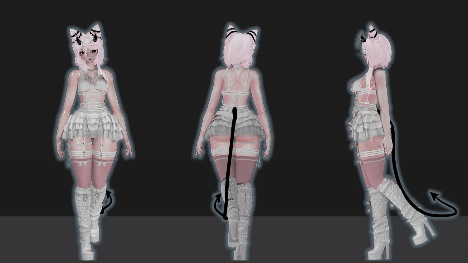 Egirl base Zinpia, starlight head Starlynn, Eye tex Ezra, Face Tex yingyangvr, CrystalTheBaka, rings and claws catakitty, muzzle Kitahra, hair 1 & string top saikura, Hair 2 Darcy, Outfit 2 harness suki, Ears Velvet, Index Snoww, Piercings Angel, Horns Lunarai, Tail Peep's Boutique, Wet Skin TheThiccWitch, Cage world drop Kenvi