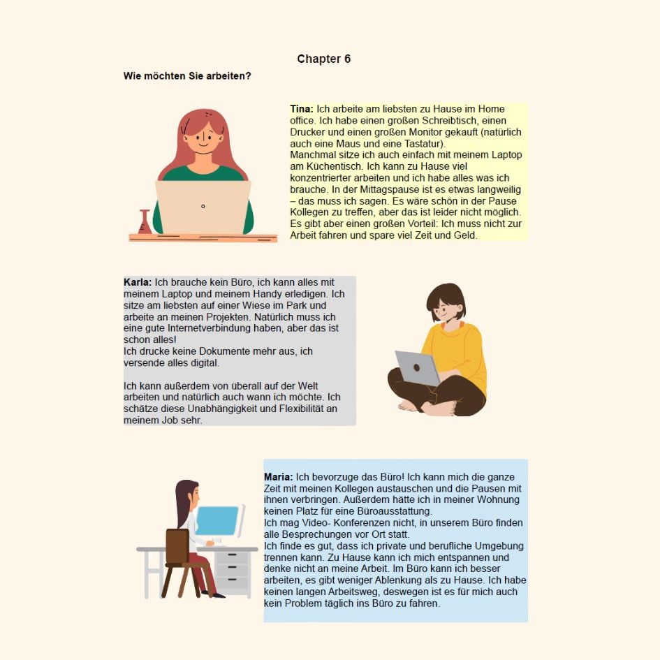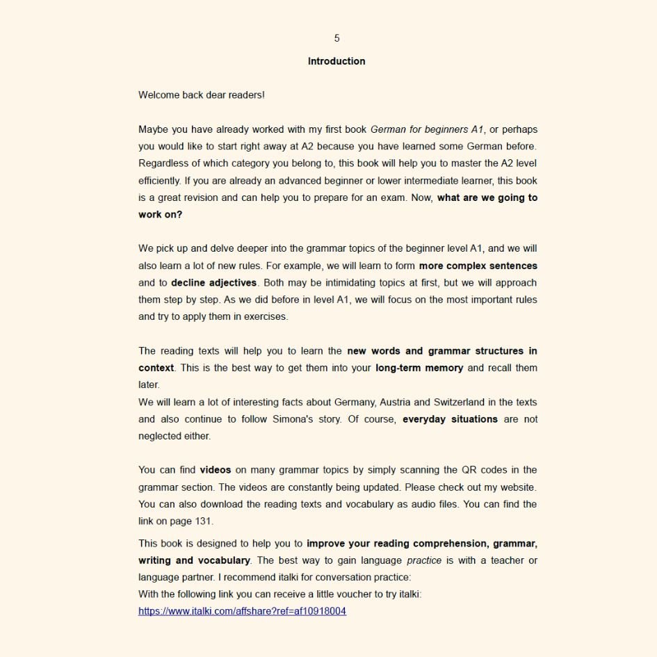 You will learn German step by step with essential grammar rules, important core vocabulary, and engaging stories. Key grammar topics are accompanied by QR codes, allowing you to watch helpful videos that explain the rules in detail. You can also listen to the reading texts to improve your pronunciation.