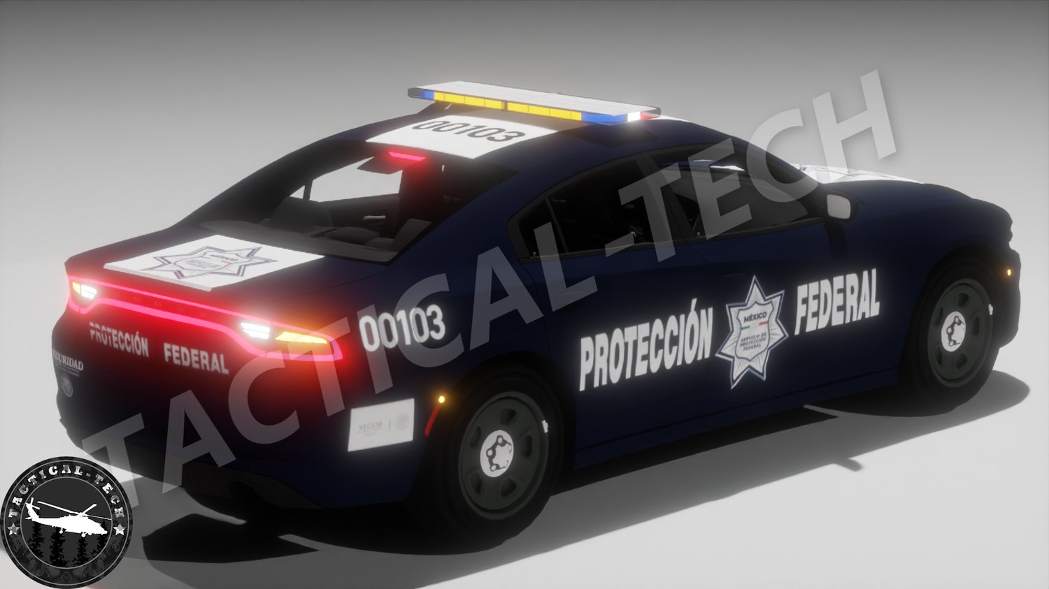 Functional Chassis: The Mexico Federal Protection Dodge Charger model features a functional chassis that allows the wheels to turn and the vehicle to move realistically, making it suitable for animated scenes or simulations involving motion.