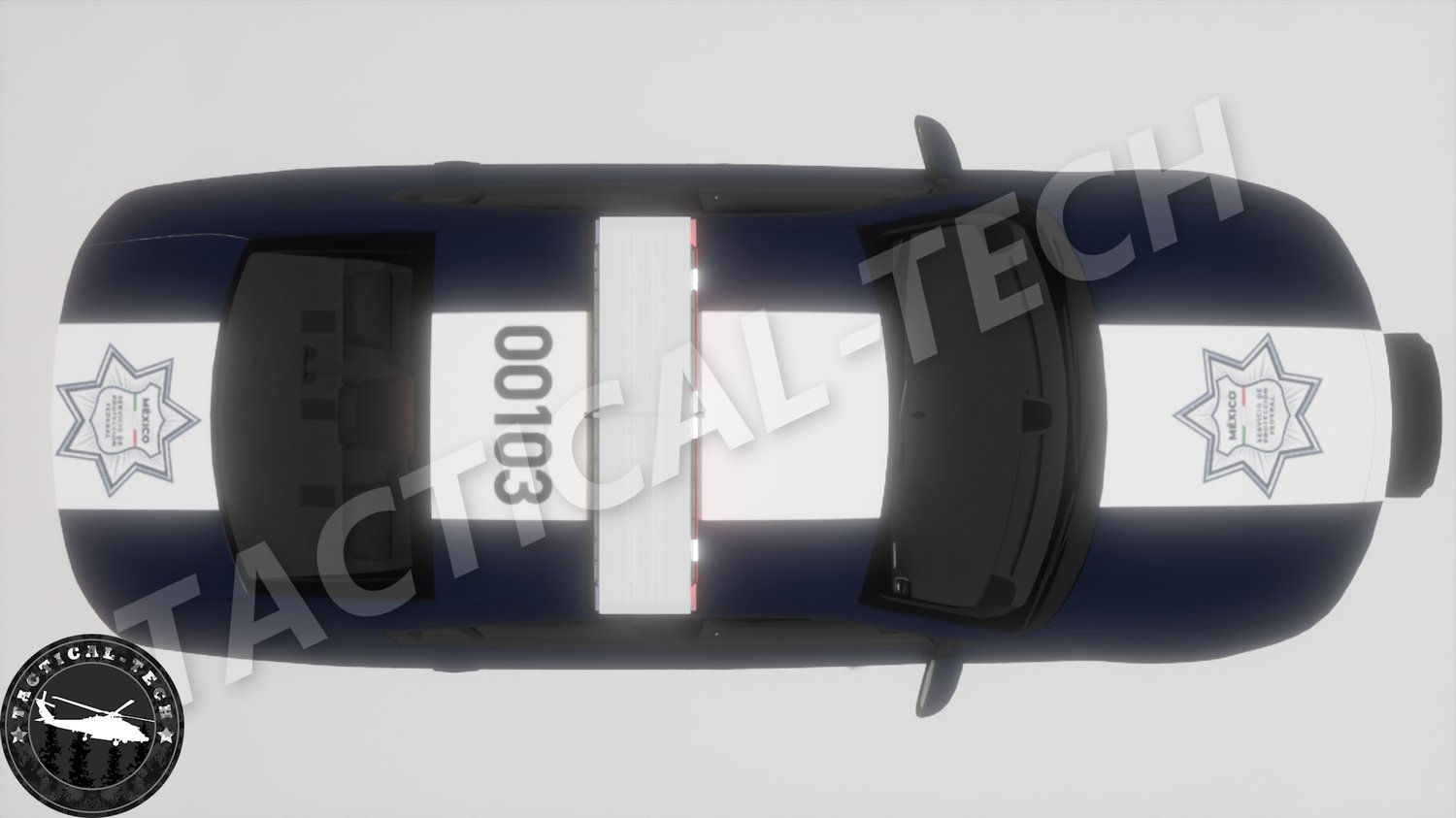 Model Texture: The model texture simulates the distinctive look of a Mexican Federal Protection vehicle, with the colors and markings used on official security cars, such as black and white, along with the law enforcement agency's signature logos and symbols.