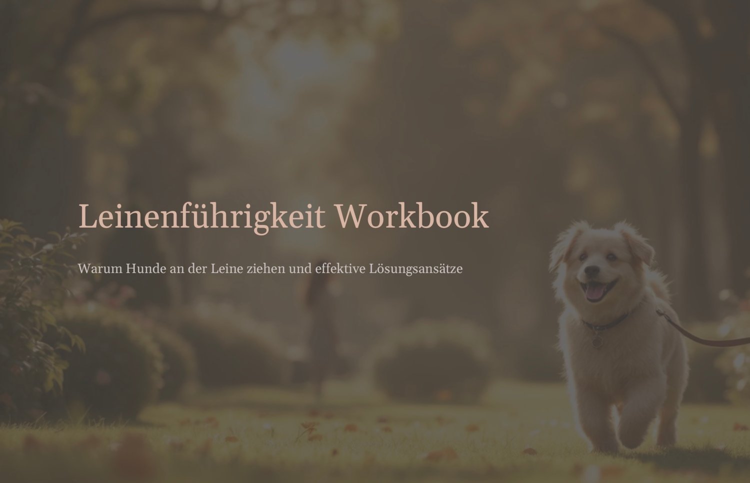 In meinem Leinenführungs-Workbook begleite ich dich Schritt für Schritt auf dem Weg zu entspannter Leinenführigkeit – ganz ohne Druck, sondern mit Verständnis, klarer Struktur und alltagstauglichen Übungen.