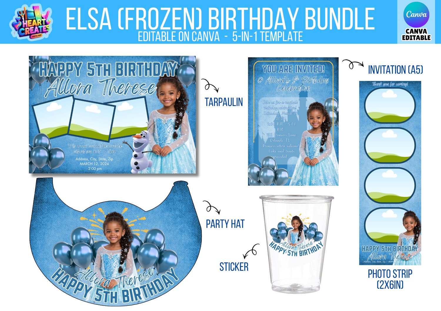 ❄️ Elsa Frozen Inspired Birthday Bundle Template | Editable Canva Birthday Set | Ice Princess Birthday Party Decorations | Winter Wonderland Party | Digital Download