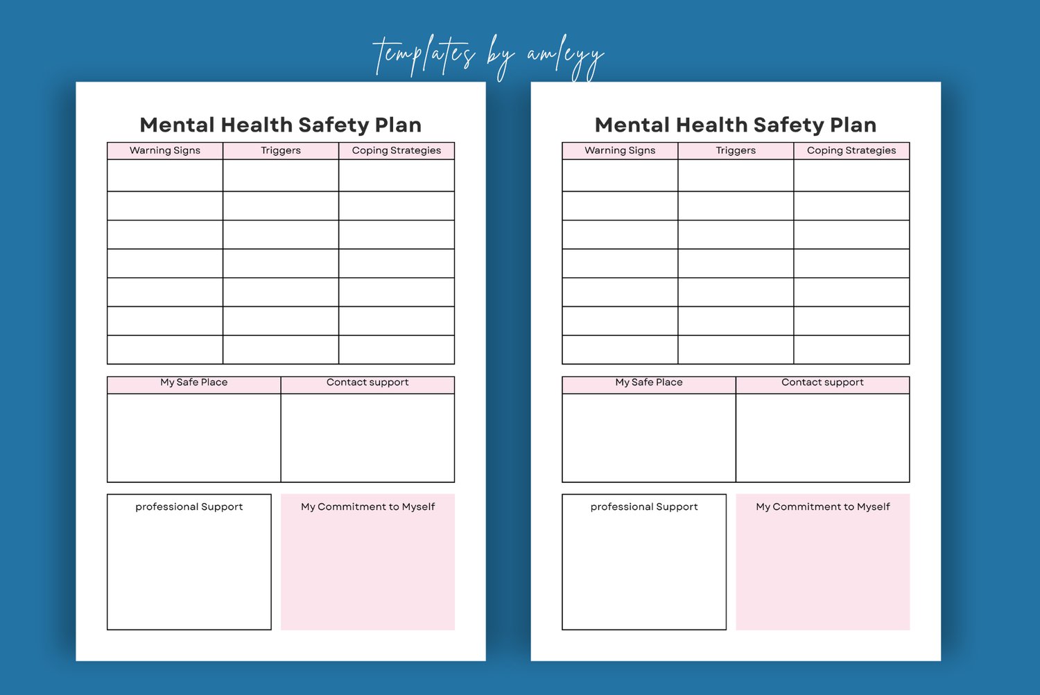 Mental Health Safety Plan Planner | Editable Canva Template | Self Care & Wellness Journal | Therapy Worksheet | Crisis Support Printable