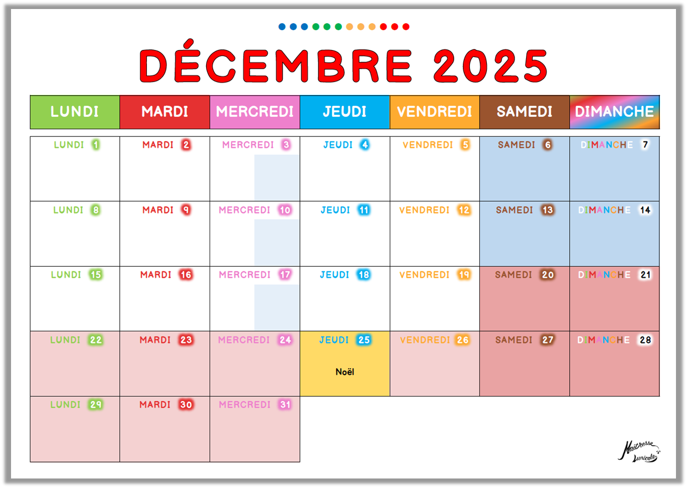 1D... - Calendriers maternelle 2025-2026 tableaux avec école le mer matin