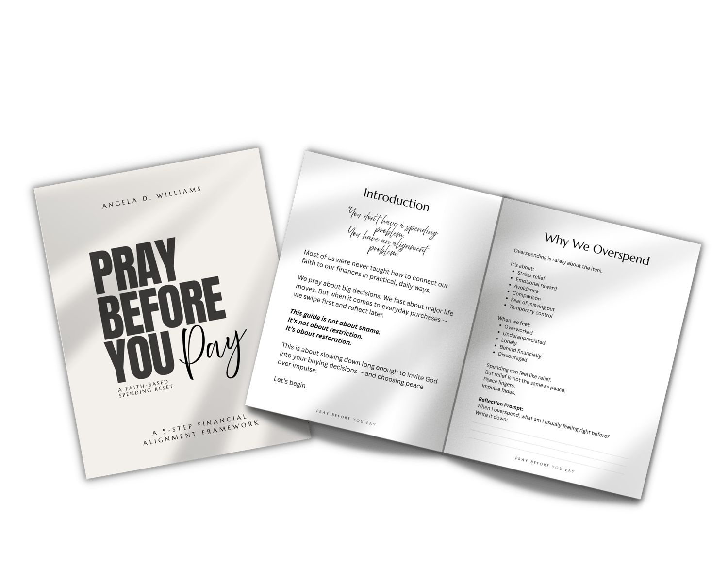 Pray Before You Pay™ is a faith-based money management guide created for Christian women who want to break emotional spending cycles, eliminate debt, and steward their finances with discipline and spiritual alignment.