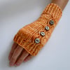 These mitts are worked in the round and feature a simple cable pattern which can be worked either from a chart or written instructions, whichever you prefer. Decorative buttons are added at the end. The narrow cable can be worked with or without a cable needle, as preferred.