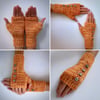 Finished mitts are 19.5cm long and 15 (17, 19) cm unstretched circumference.