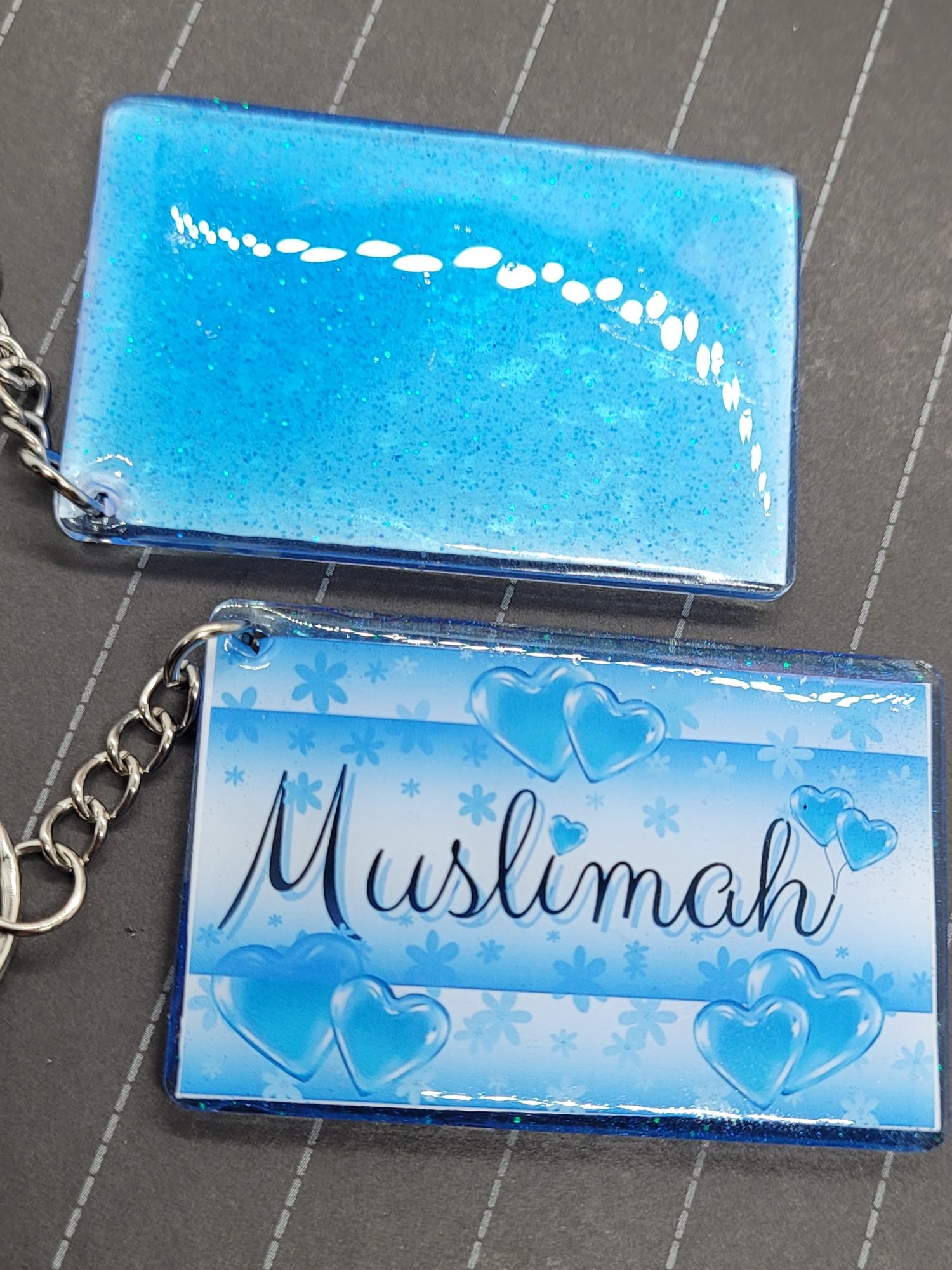 - Rectangle Muslimah Acrylic Keychain (Blue) Coated in Resin