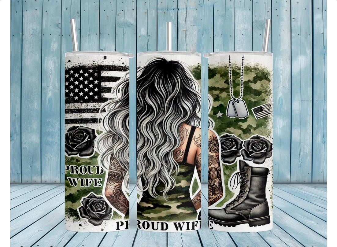 Military Wife Tumbler Wrap, Proud Patriotic Wife, US American Flag, 20 Oz Skinny Sublimation Tumbler Wrap Digital Design PNG File Download