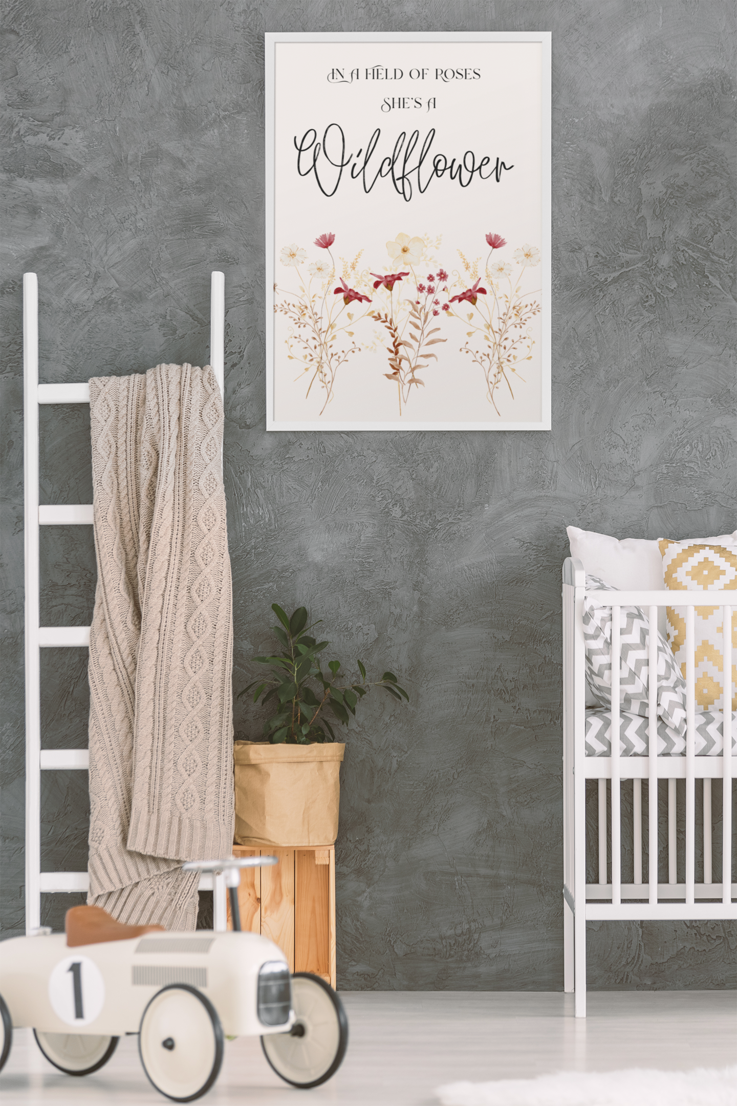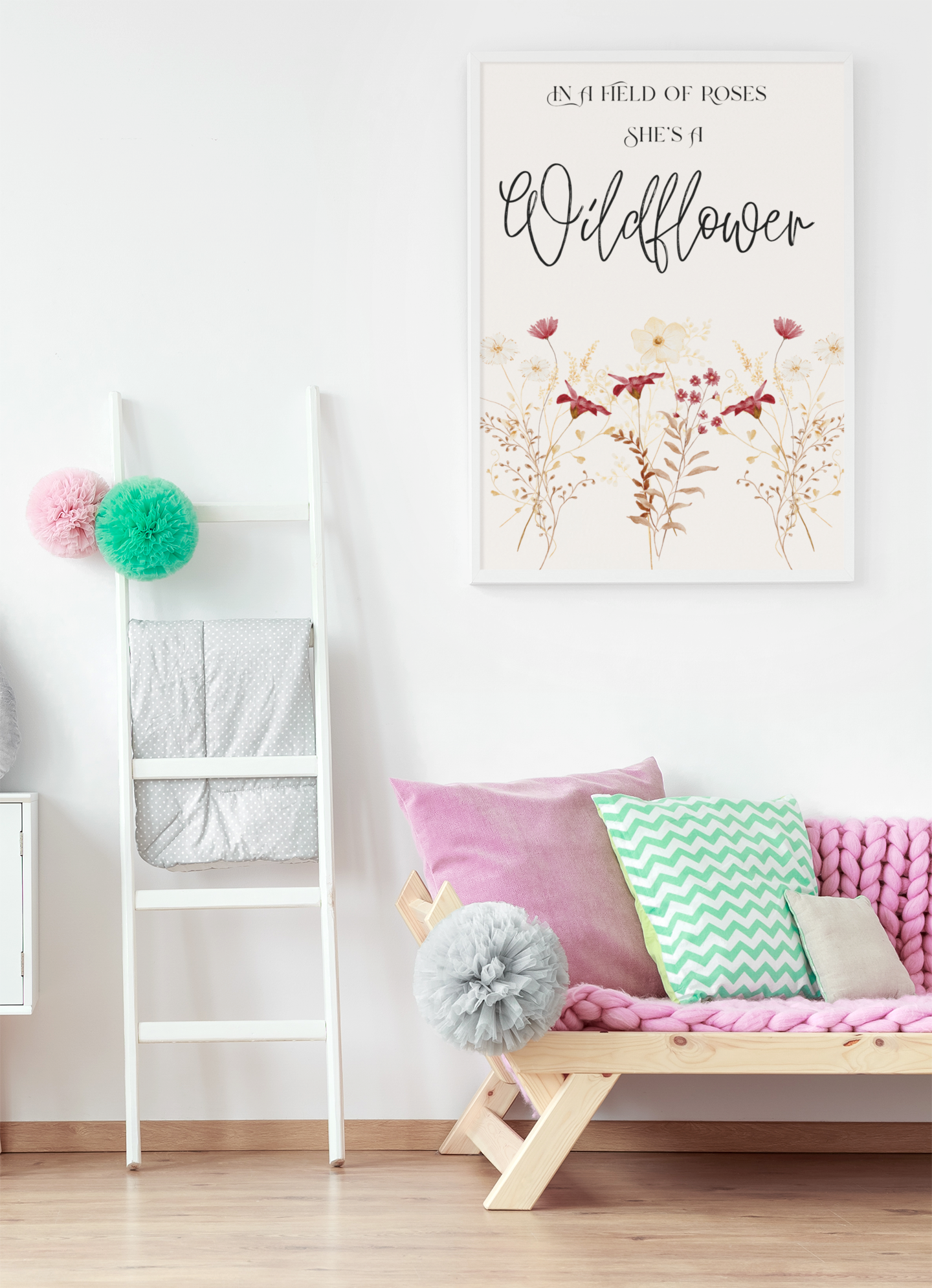 Delicate florals and empowering words — perfect for wild little spirits in nurseries or playrooms..