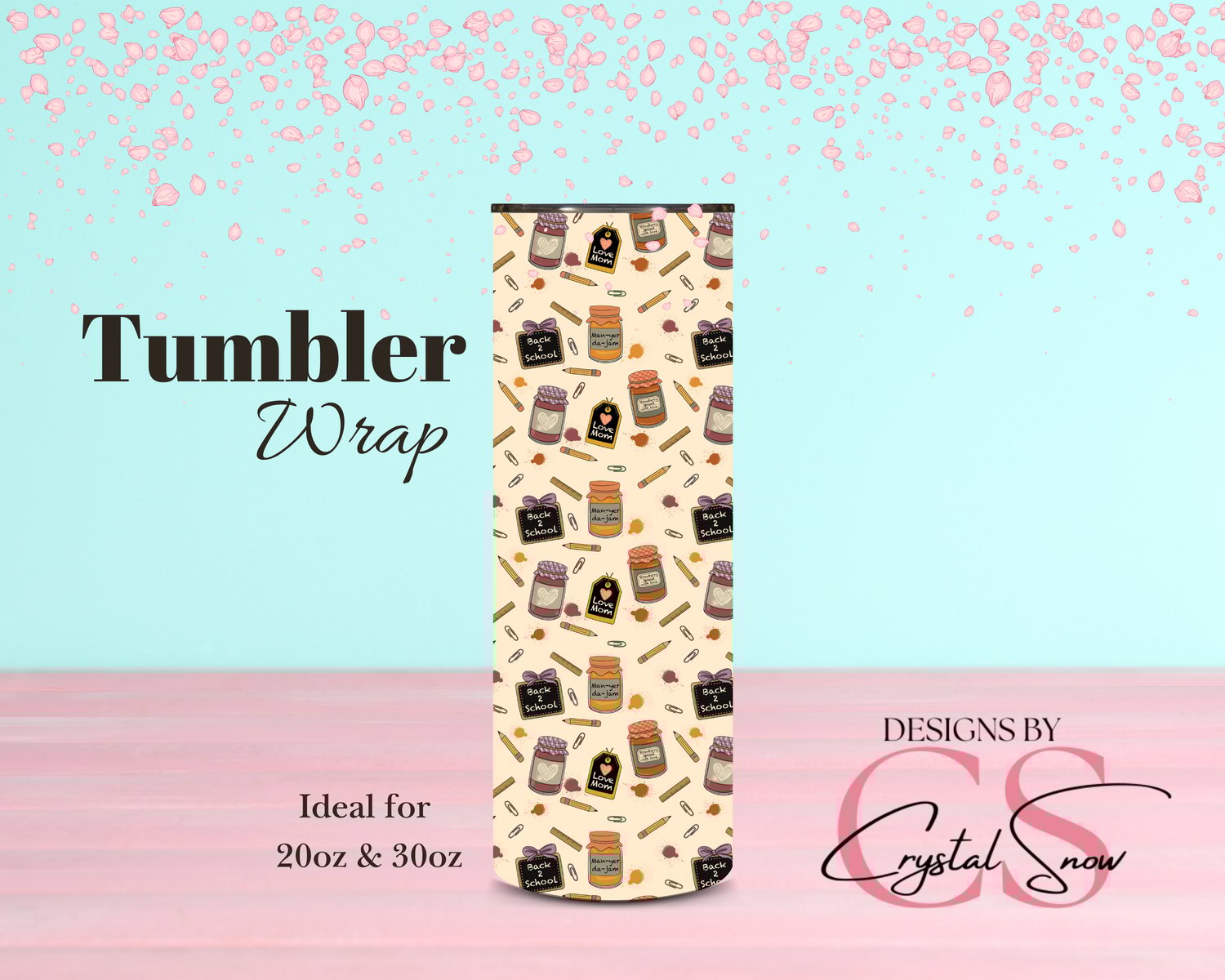 Back to School Jam Canning Jars 20 oz & 30 oz Skinny Tumbler Wrap PNG Vinyl Sublimation