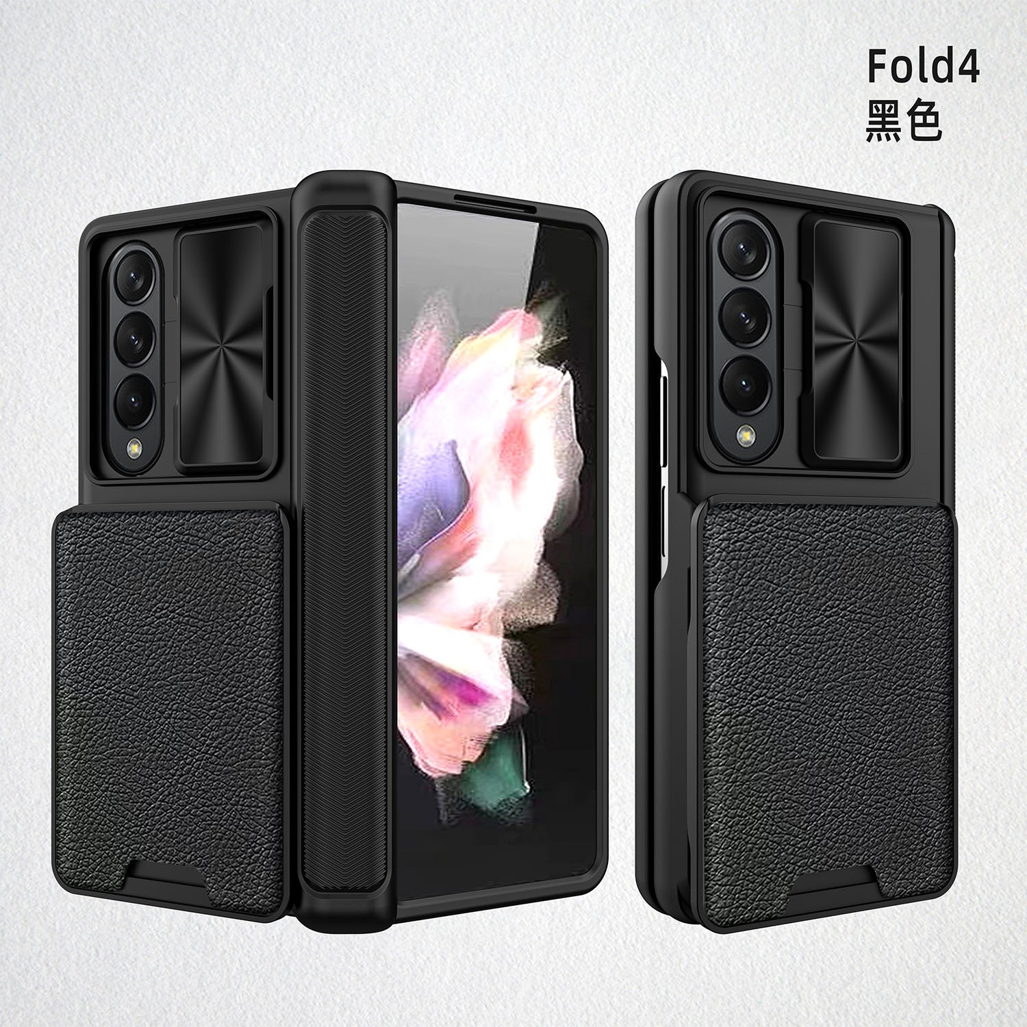 - [Removable Slide Magnetic Card Holder] This Fold 4 wallet case with card holder, slide removable leather card holder pocket feature. Conveniently slide open and close while storing 3-4 cards securely. Z Fold 4 Case wallet will protect both your personal information as well as your Samsung Fold 4.