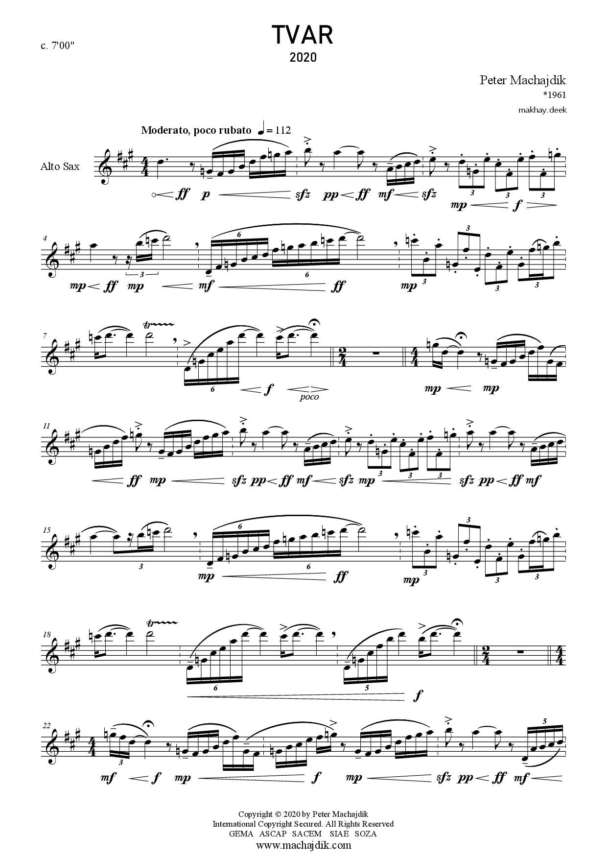 Peter Machajdík: TVAR for alto saxophone (Digital Sheet Music)
