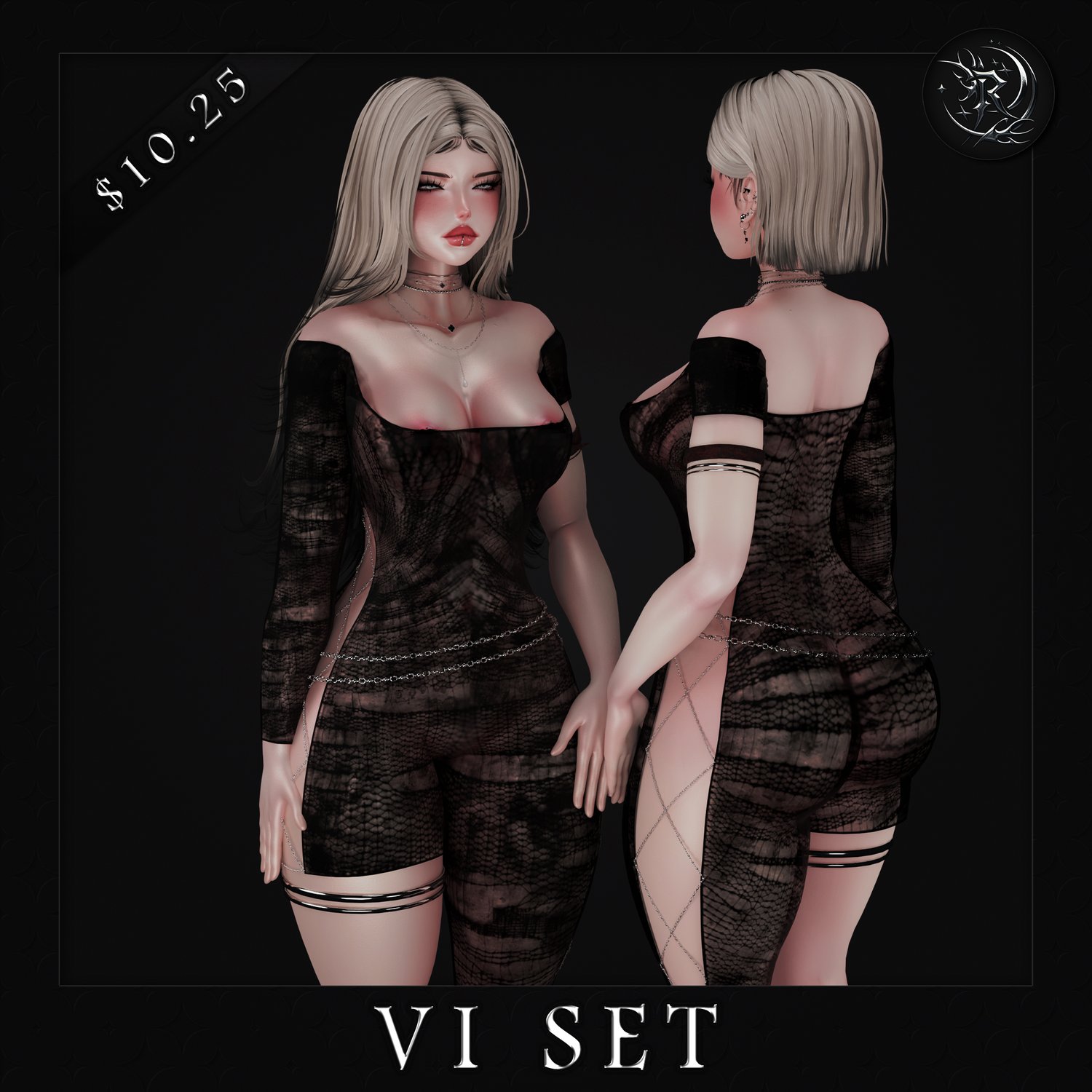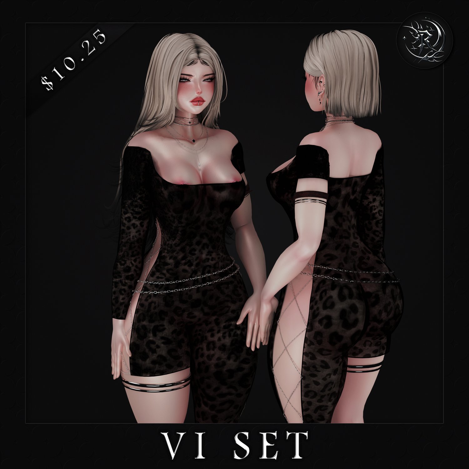 - VI Set includes: a bodysuit with two different styles and accessories.