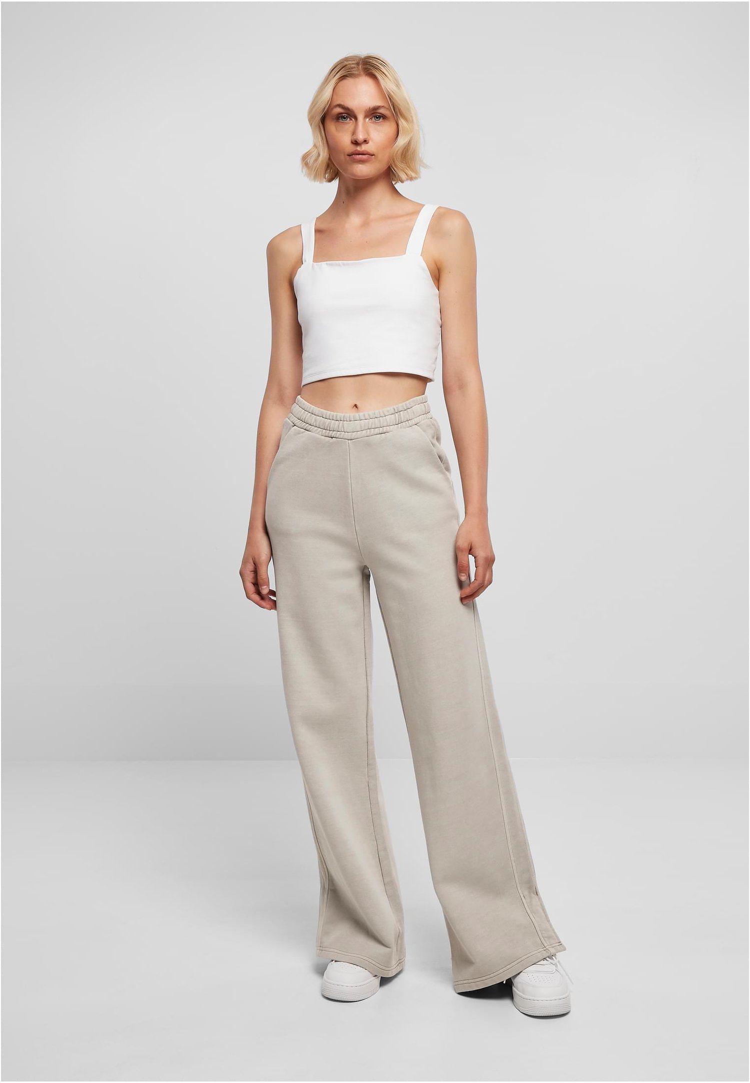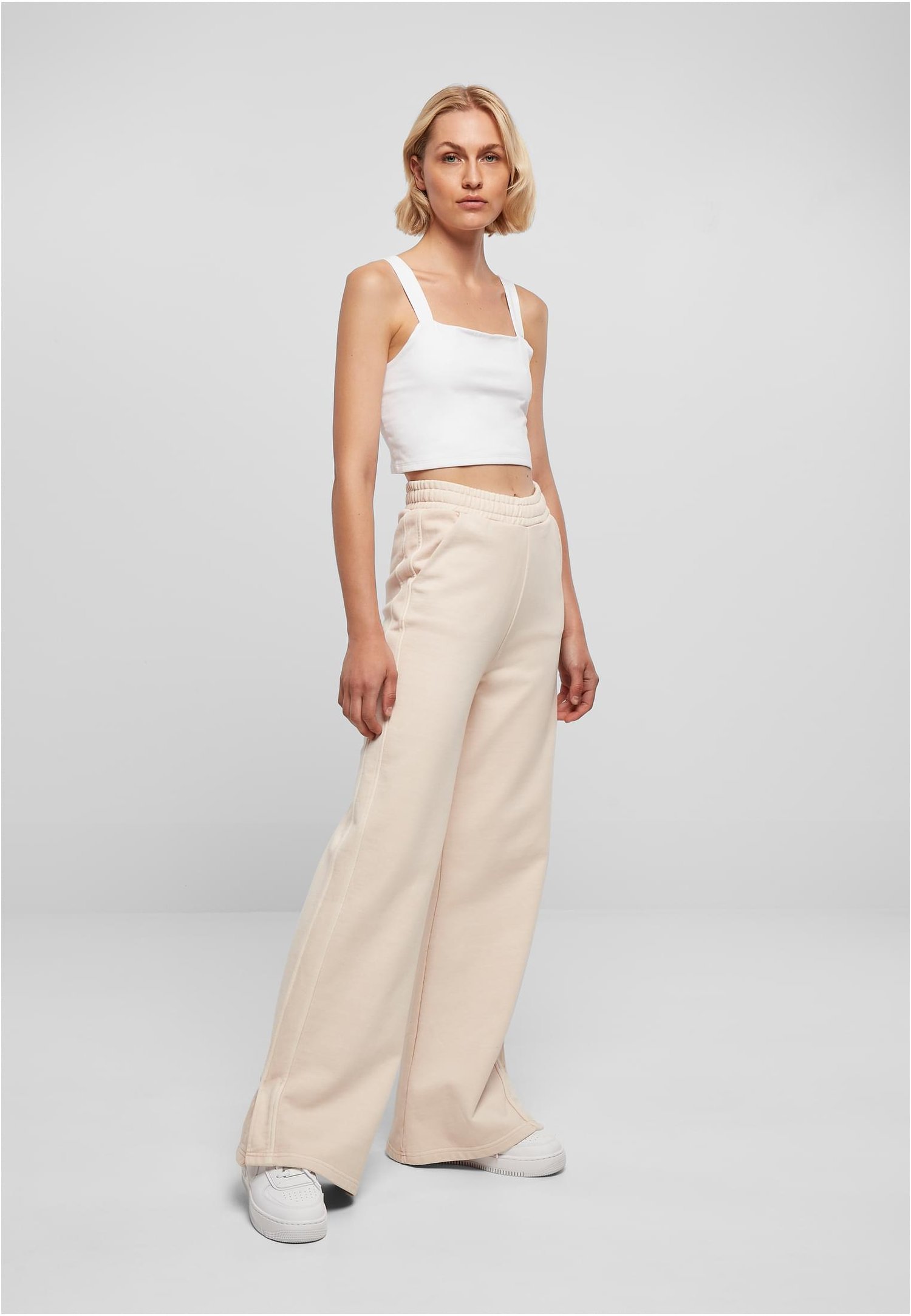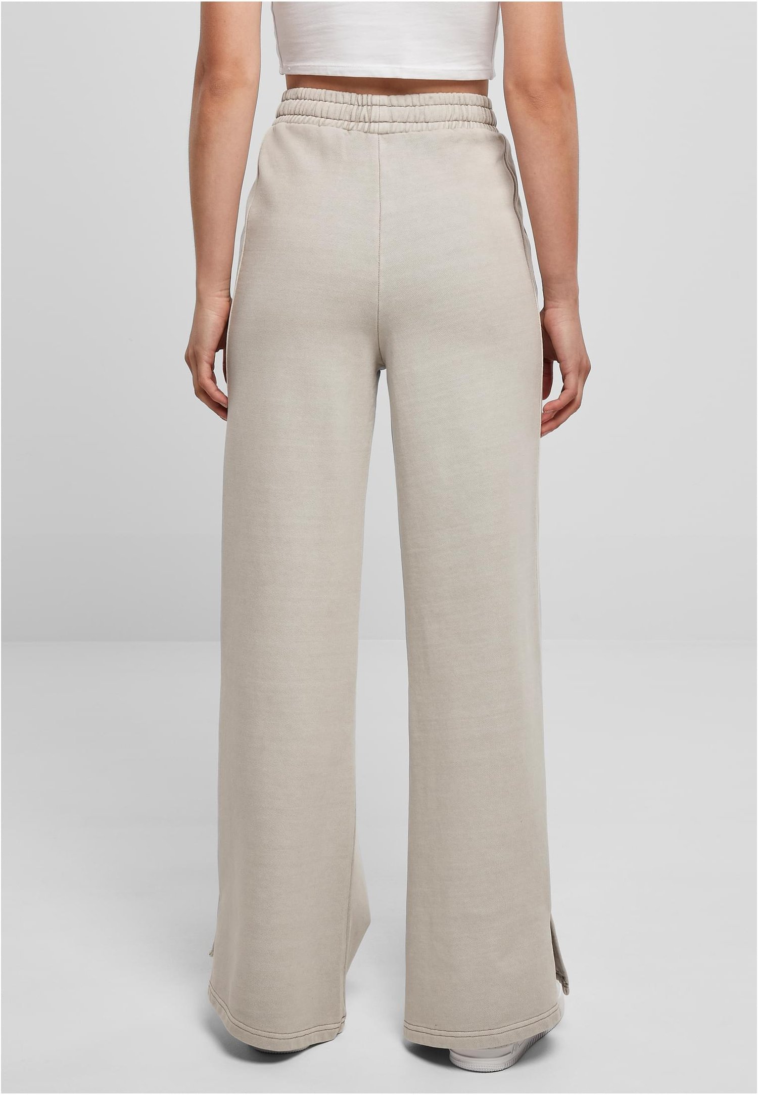 Held secure by an elastic waistband these women's sweatpants sit high on the waist. For hands and essentials two side pockets stand for disposal. A wide, loose fit and a smooth fabric made of heavy cotton terry ensure finest wearing comfort. Furthermore, the design features slit cuffs, inserts on the outer legs and a light bleaching.